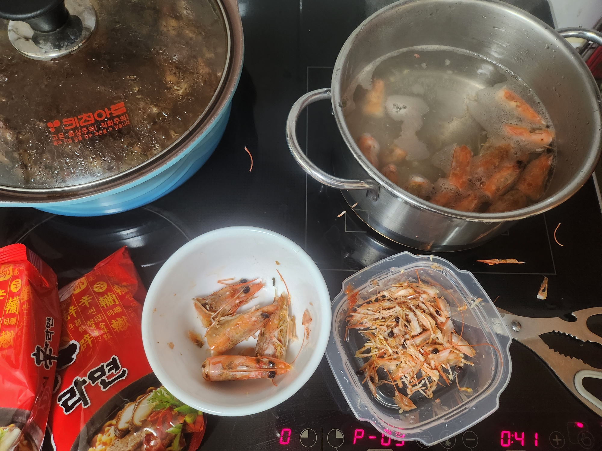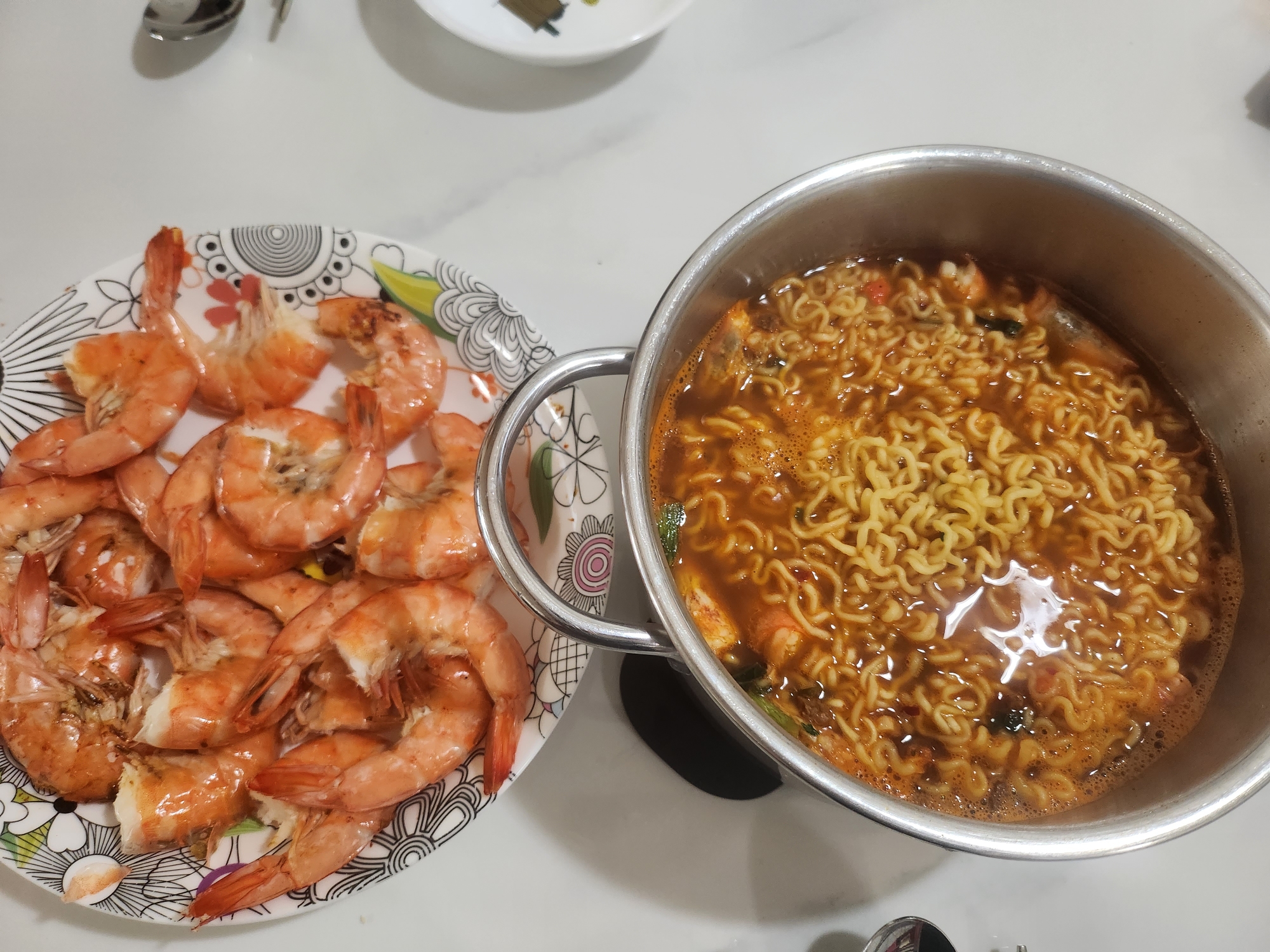 새우찜과 새우라면의 조합으로 오늘도 맛있게 저녁을 먹었습니다.