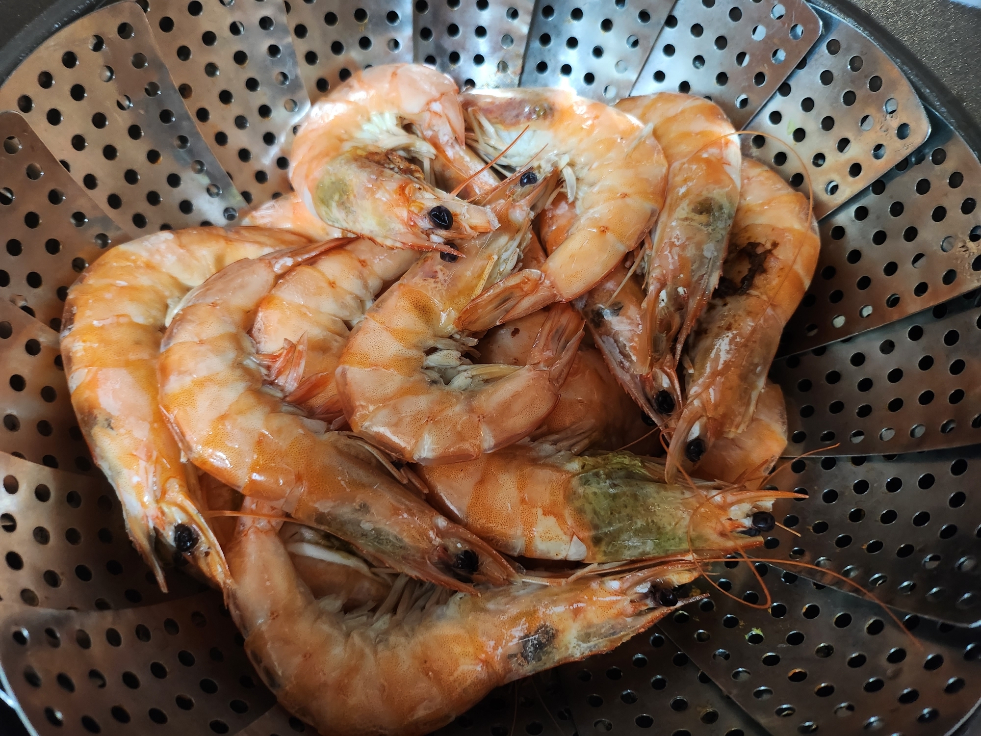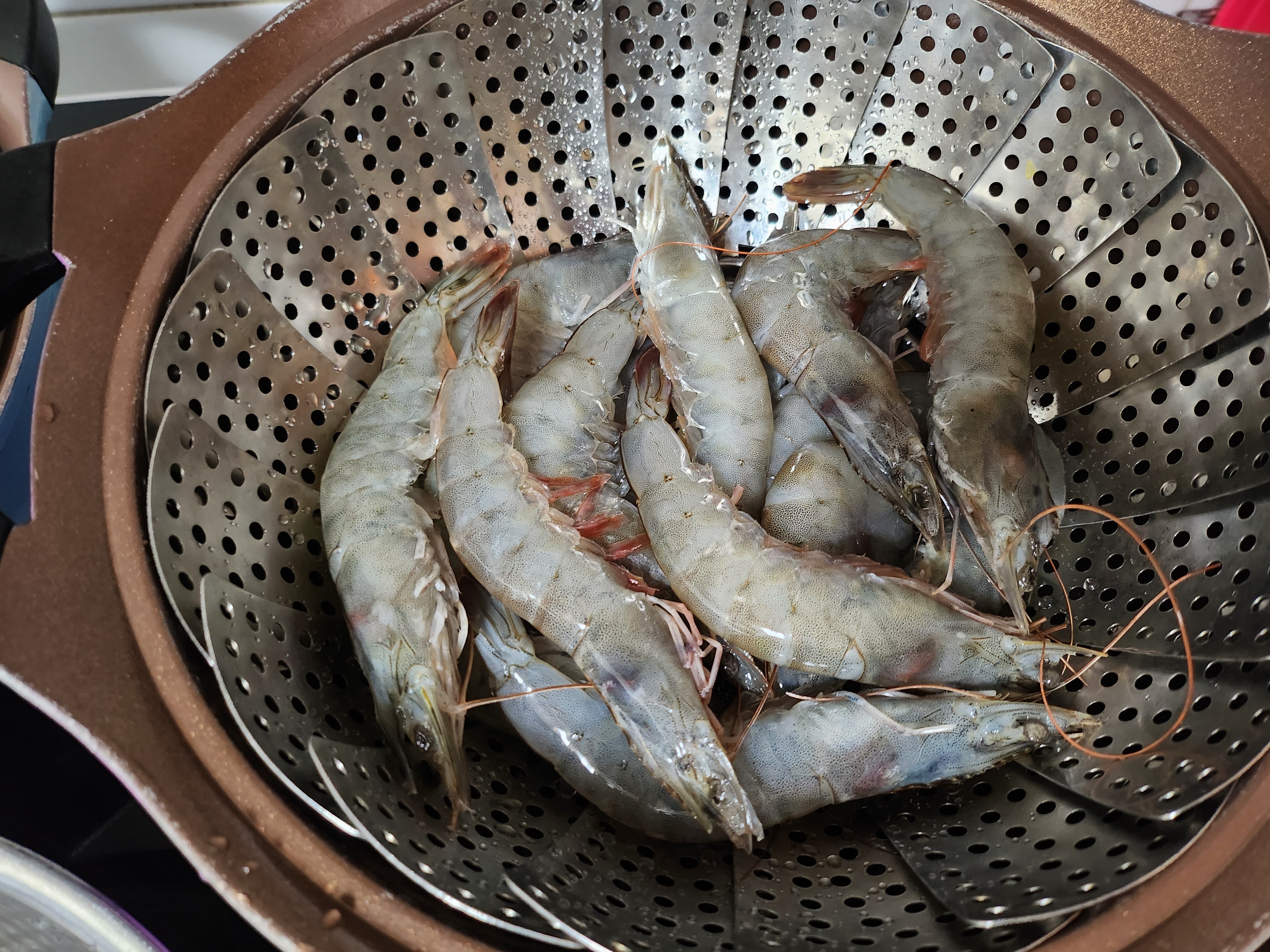 새우가 두 겹 세 겹 겹쳐있으면 10분 정도, 양이 별로 없으면 6분만 쪄도 충분합니다.