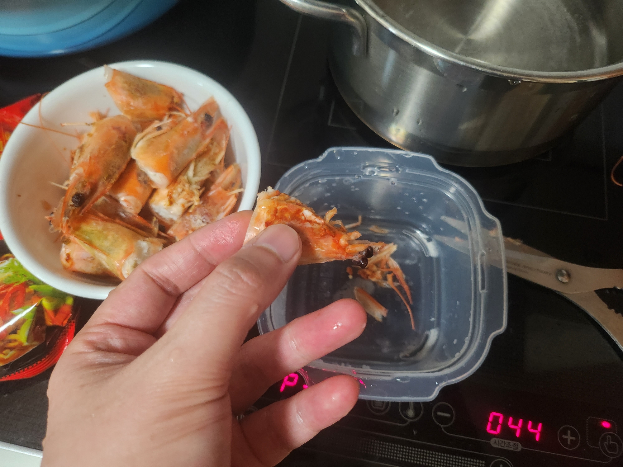 새우머리는 라면에 넣어 먹으려고 합니다.