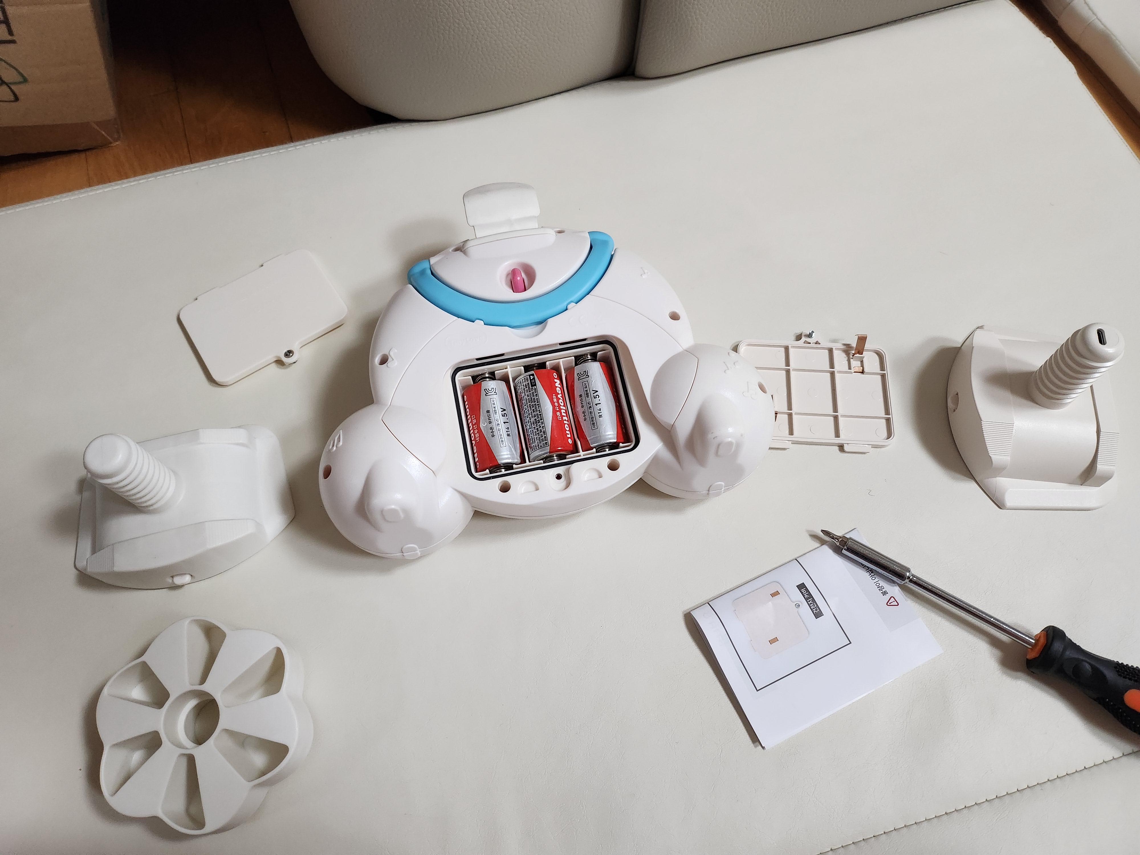 뚱뚱한 건전지 3개를 장착하고 전월을 켜니 동작이 안 됐습니다.