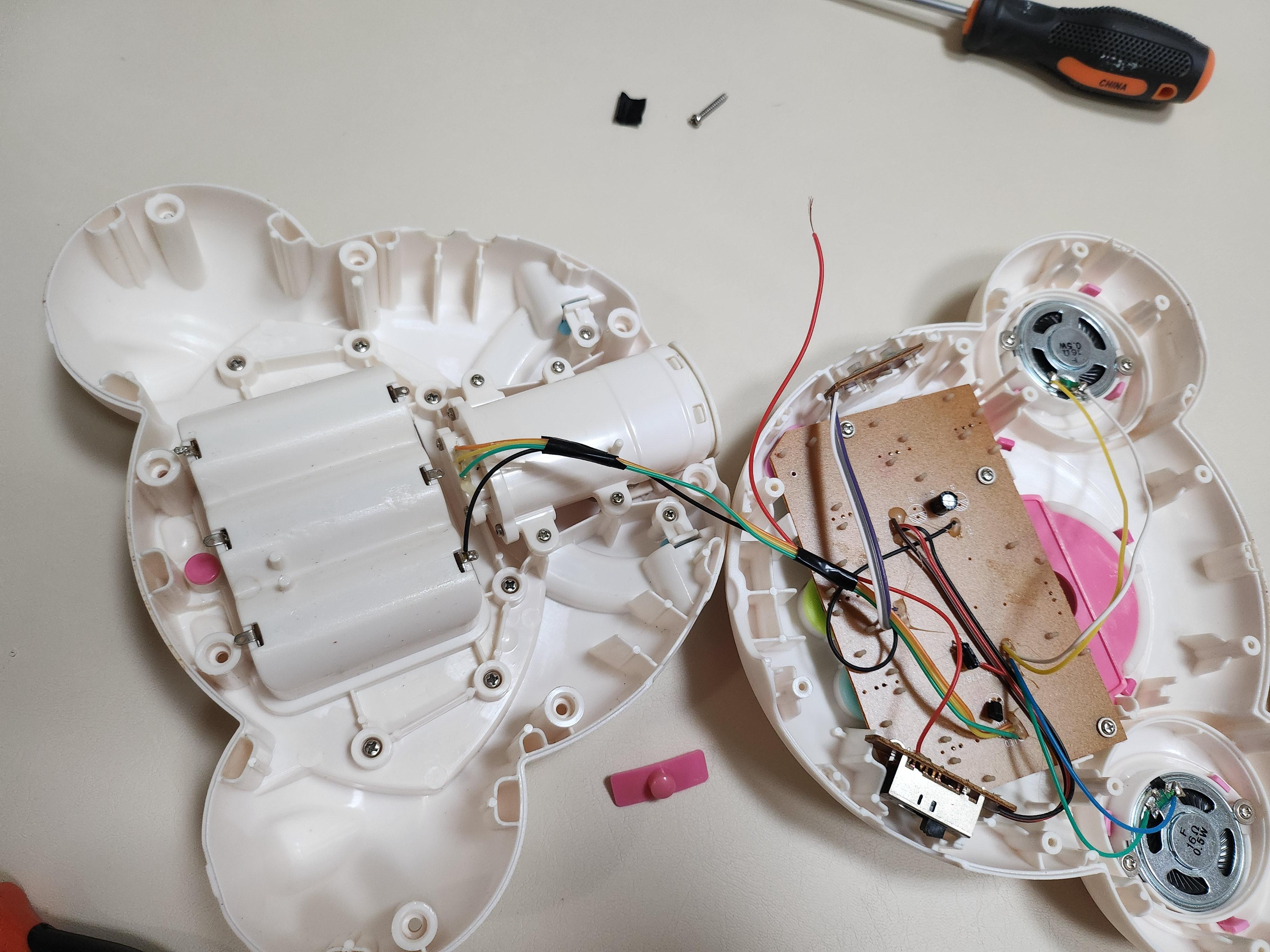 본체를 분해해서 봤더니 건전지 전원 빨간 선이 빠져있네요.