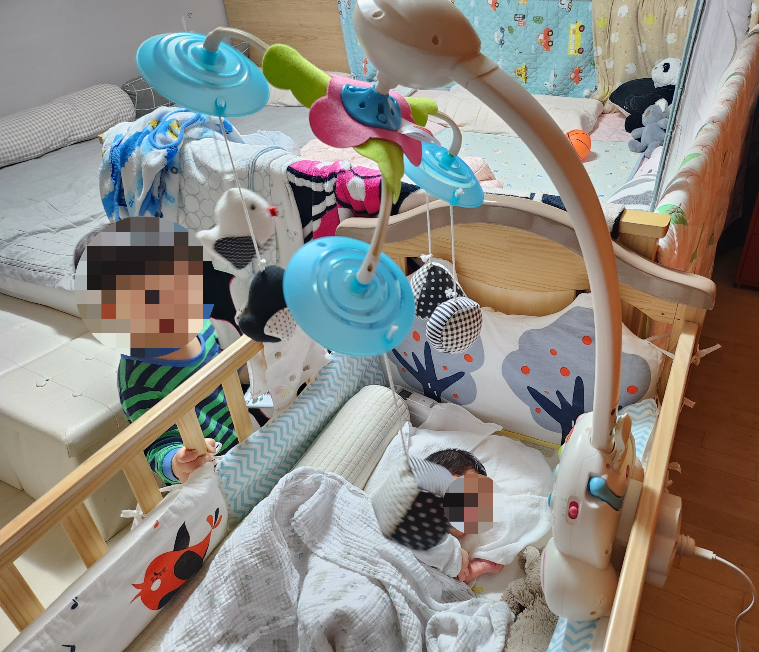 첫째가 쓰던 타이니 국민모빌 육아템을 둘째에게 보여주려고 다시 꺼냈습니다.