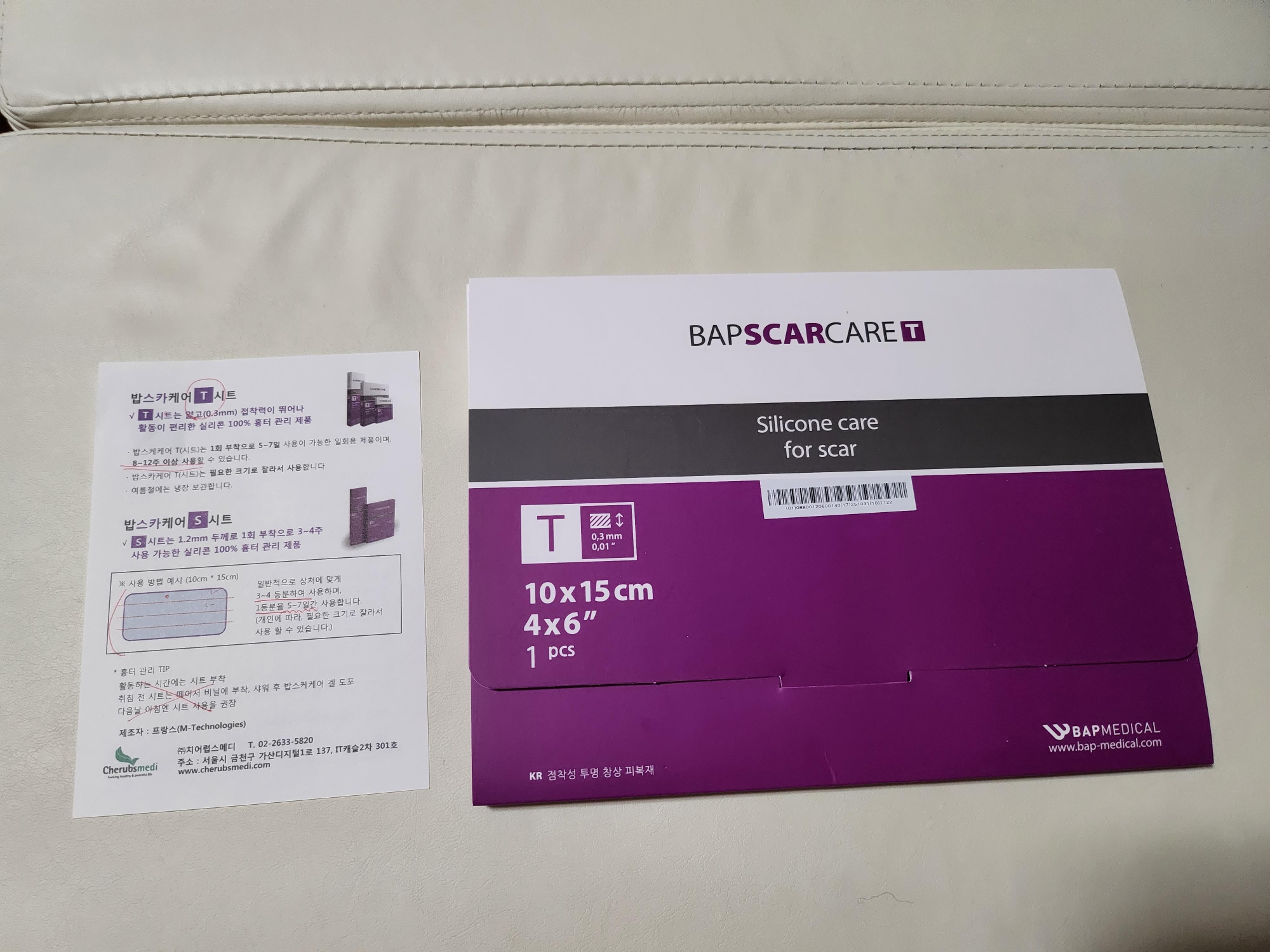 오래되거나 새로 생긴 흉터 관리에 사용하는 제품입니다.