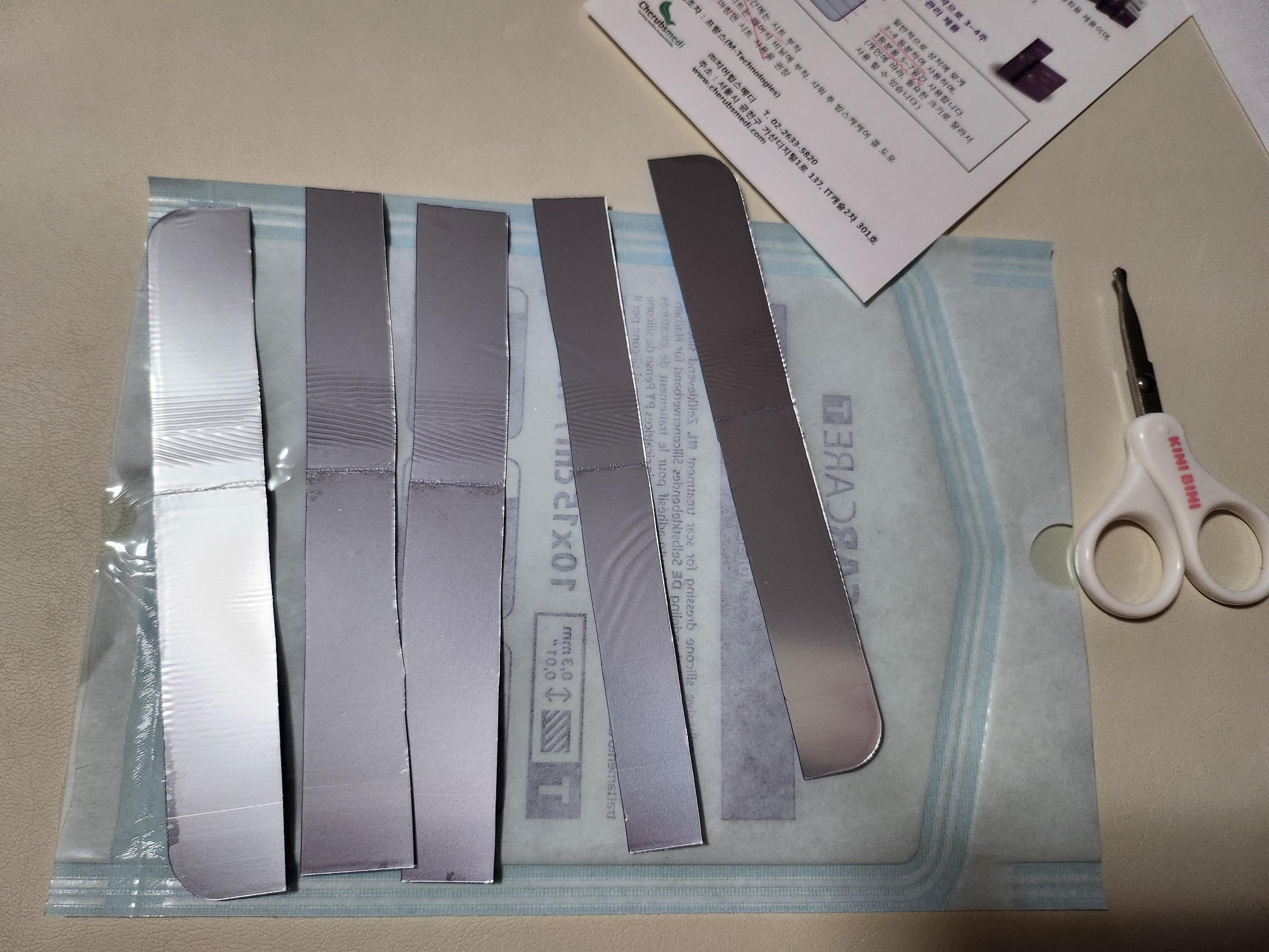 달랑 1매가 있는데 가격이 꽤 나가는 편으로 최대한 상처부위에 맞게 가위로 잘라줍니다.