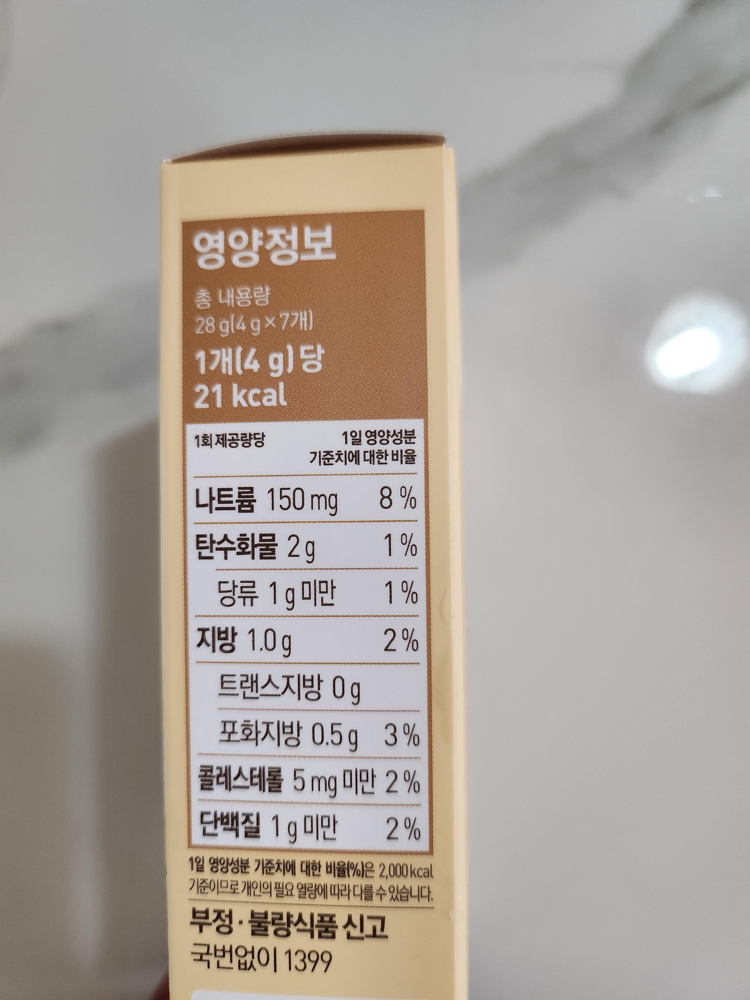 아무래도 균형 있는 영양보다는 맛을 내기 위한 제품으로 나트륨이 1일 기준치의 8%가 들어있습니다.
