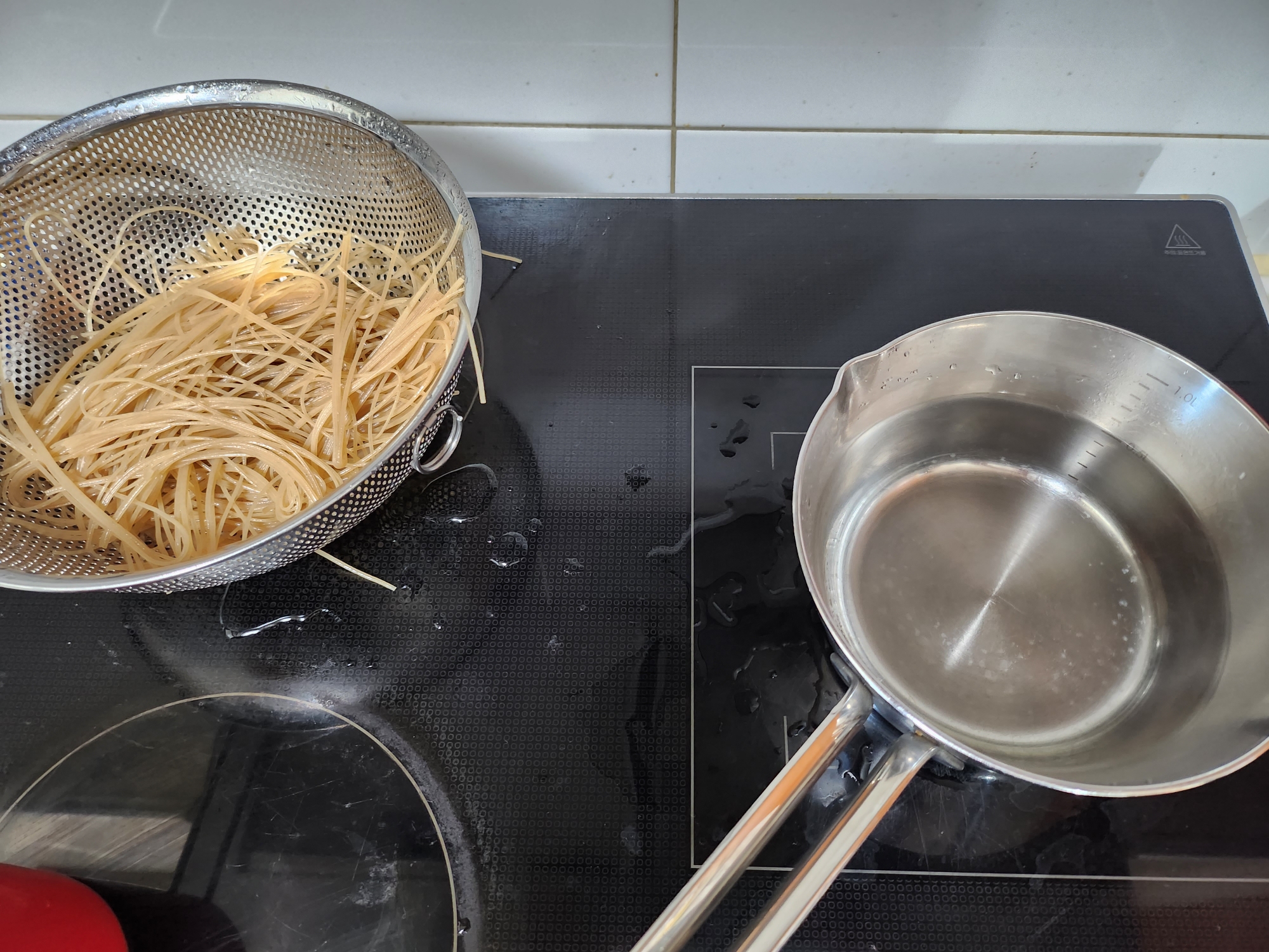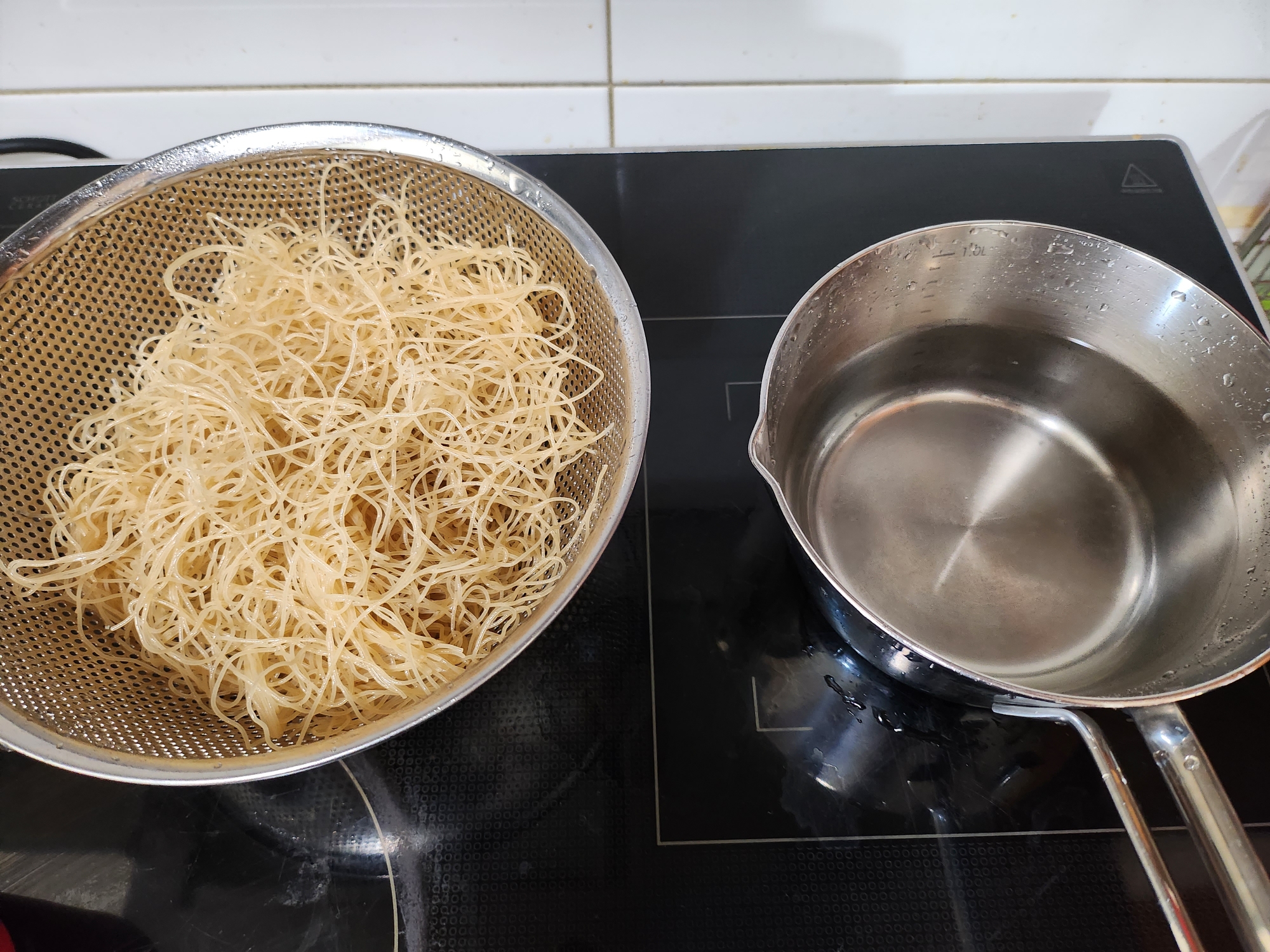 먼저 면이 하나하나 분리되도록 찬물에 잘 헹굽니다.