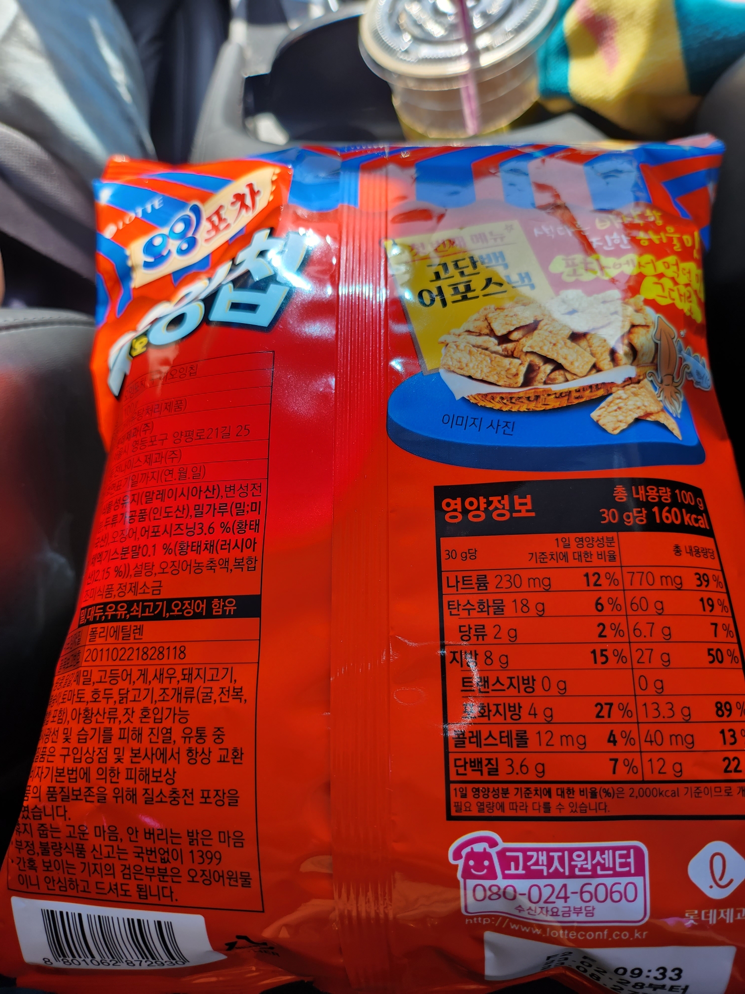 겉표지에 고단백 어포스낵이라고 써있습니다.