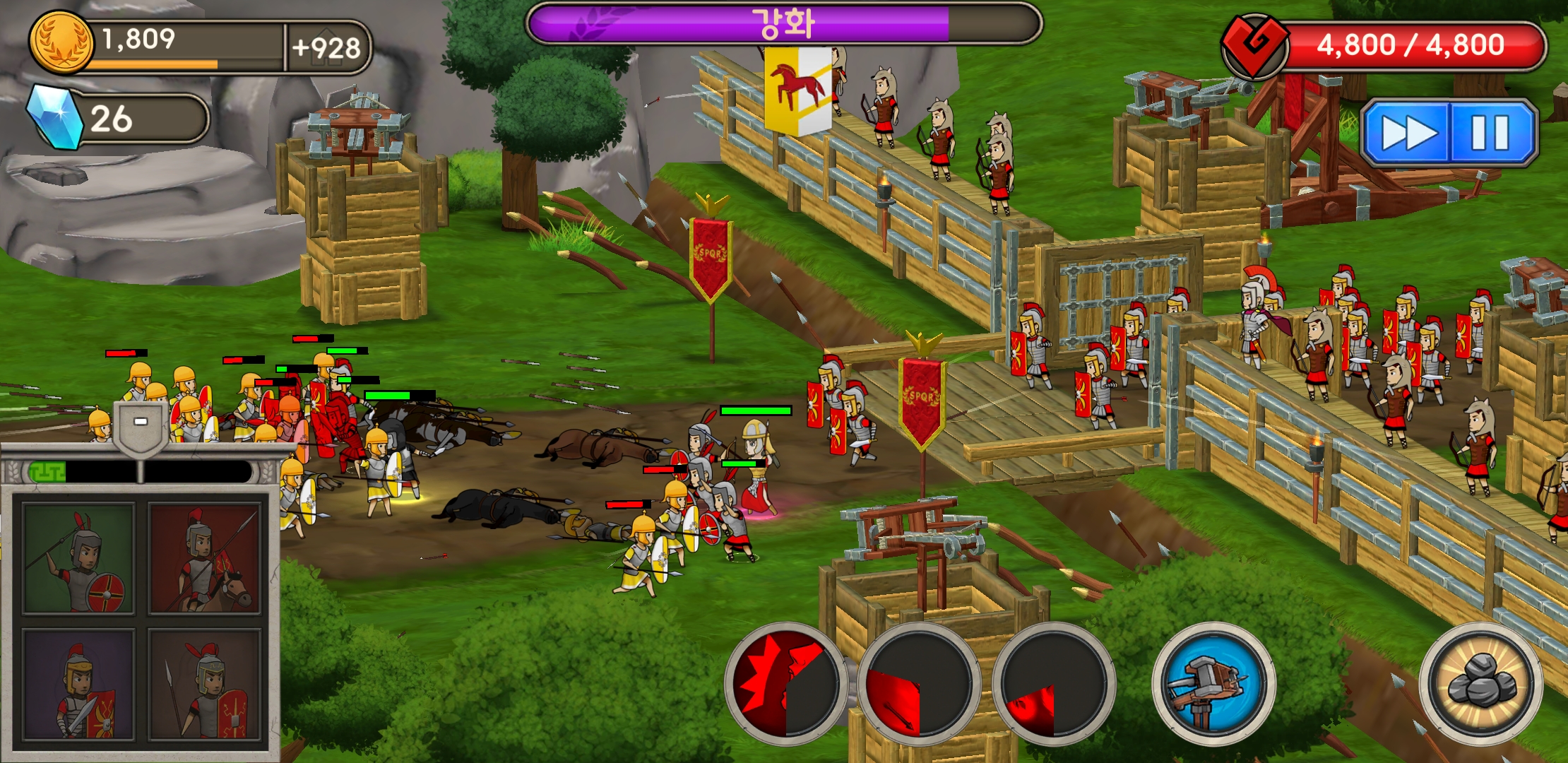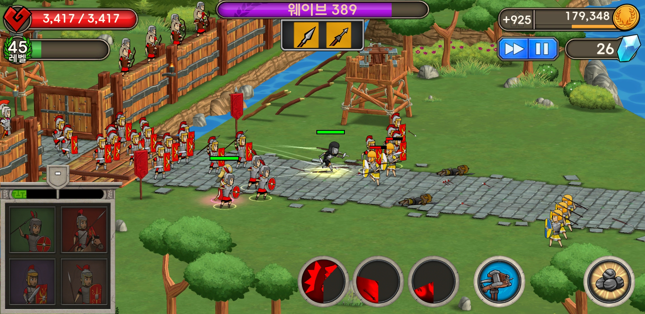 영웅도 있고 성벽 방어하는 궁수도 있다.