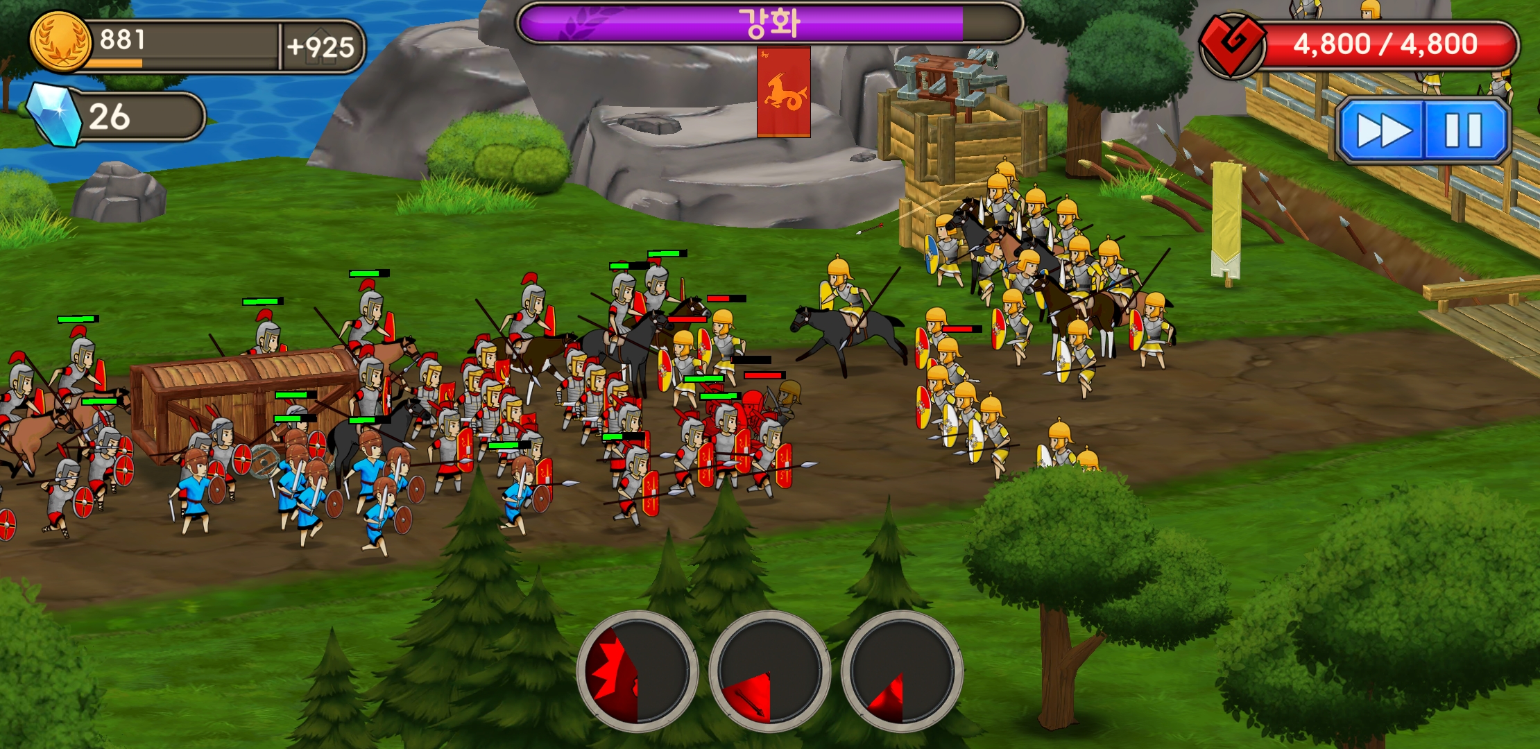 빨간색 옷을 입은 로마 병사뿐 아니라 파란색 옷을 입은 용병도 고용해서 침공한다.