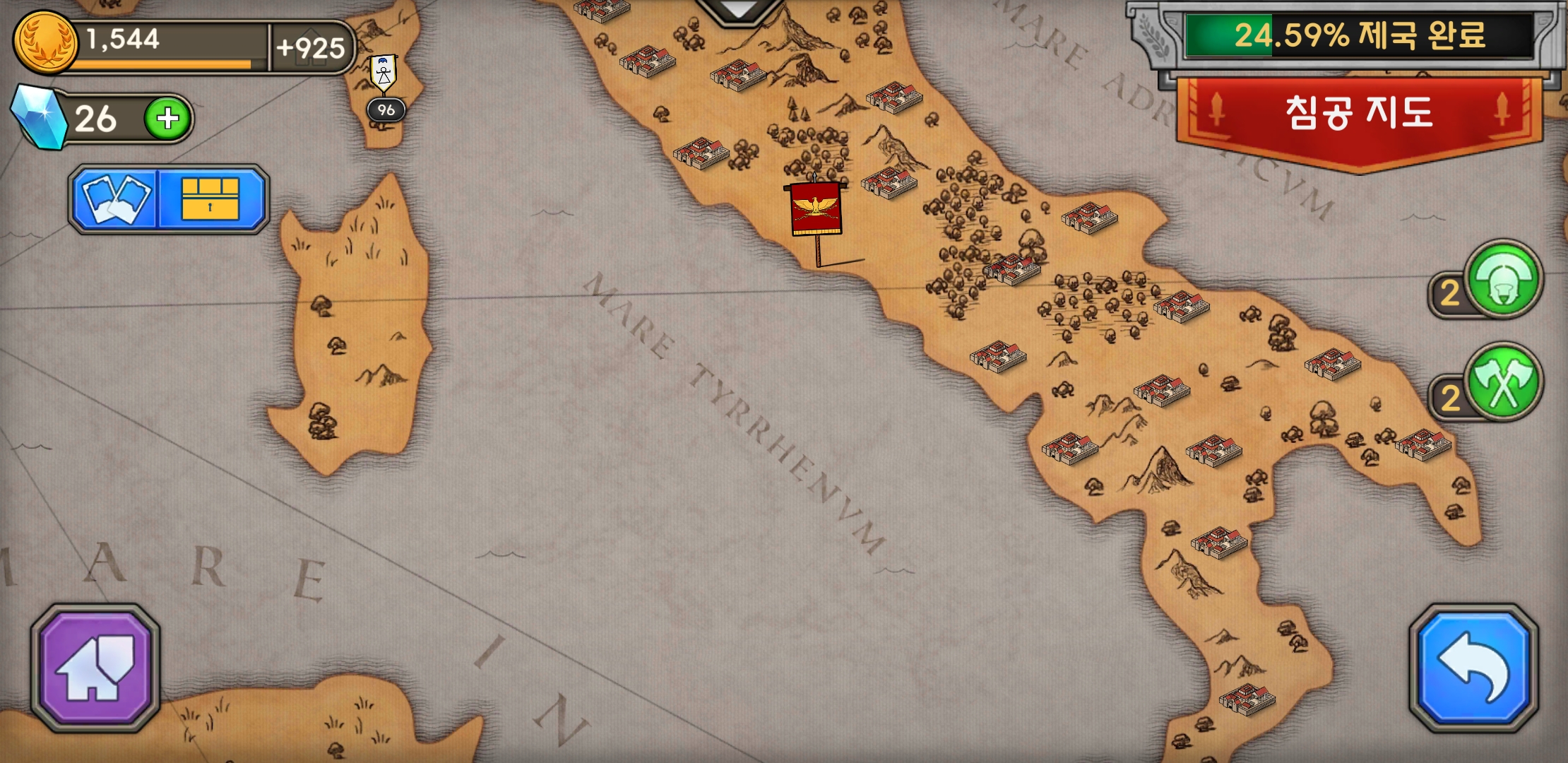 그밖에 로마 지도를 중심으로 주변국을 하나하나 정복하는 침공 모드가 있다.