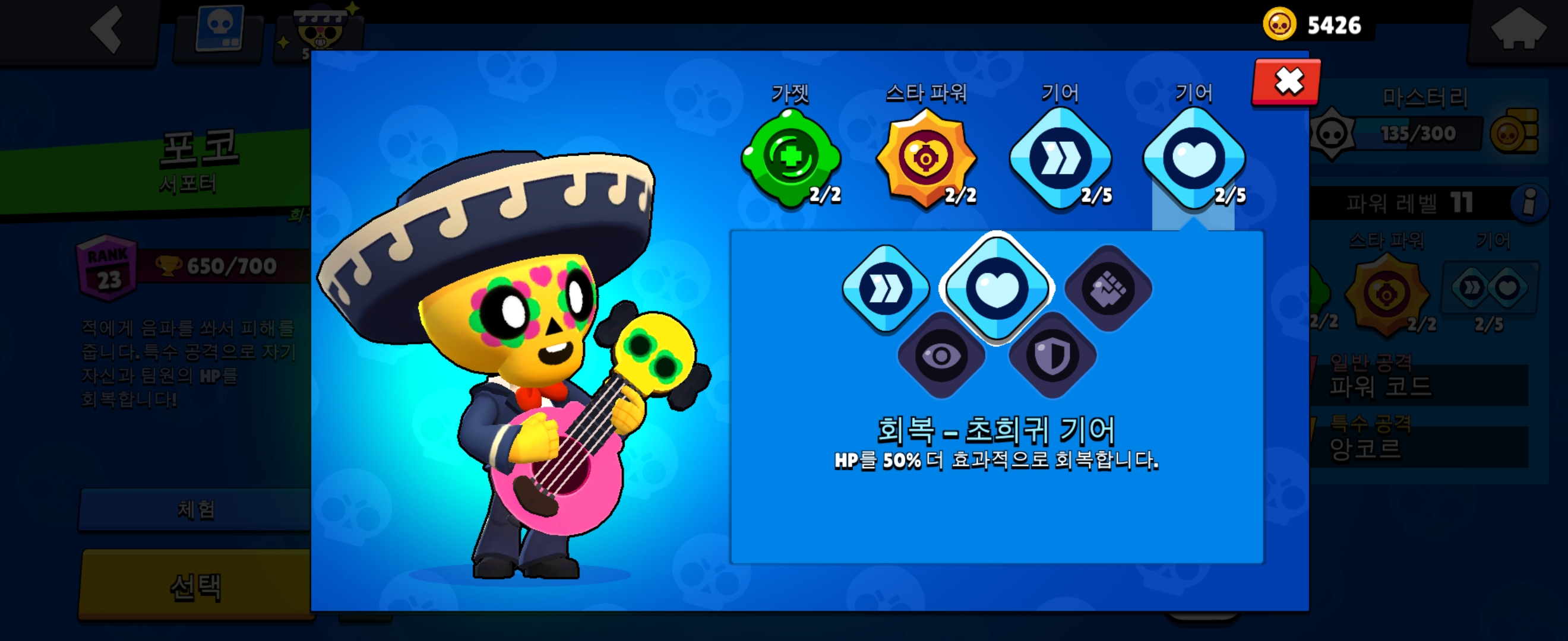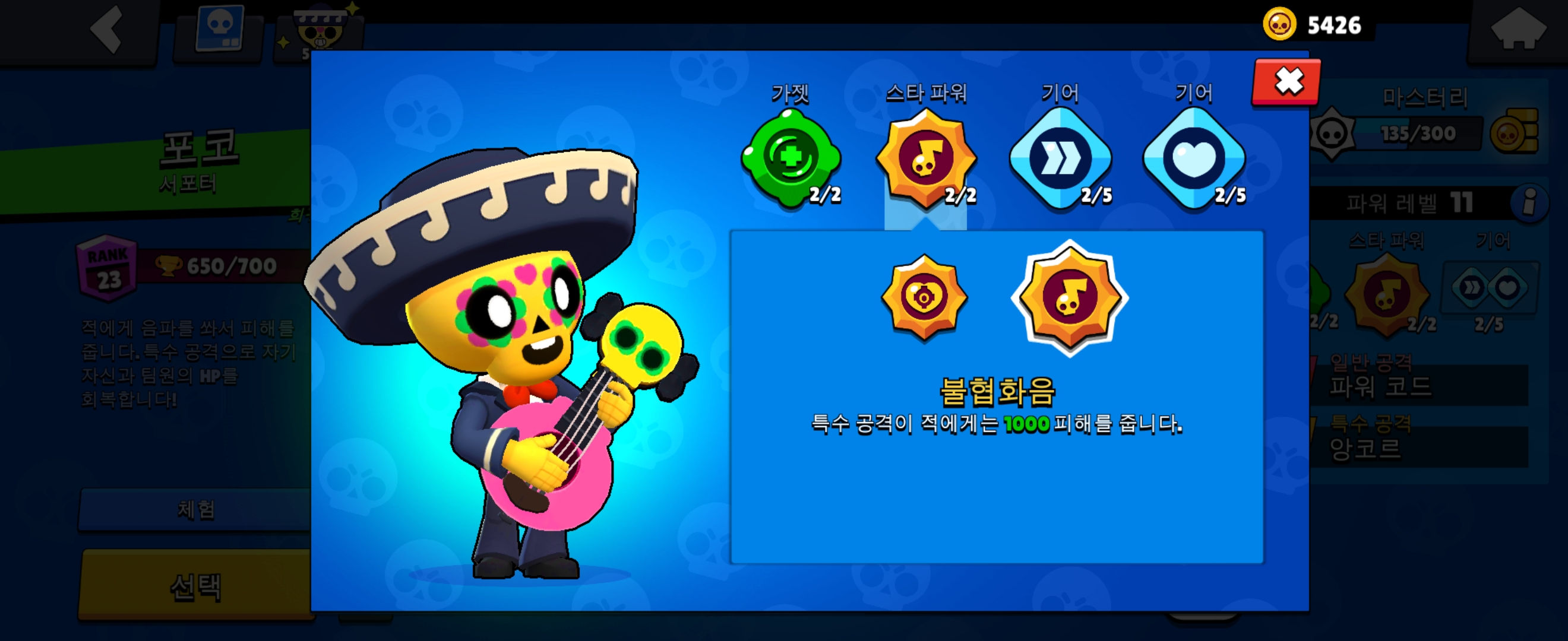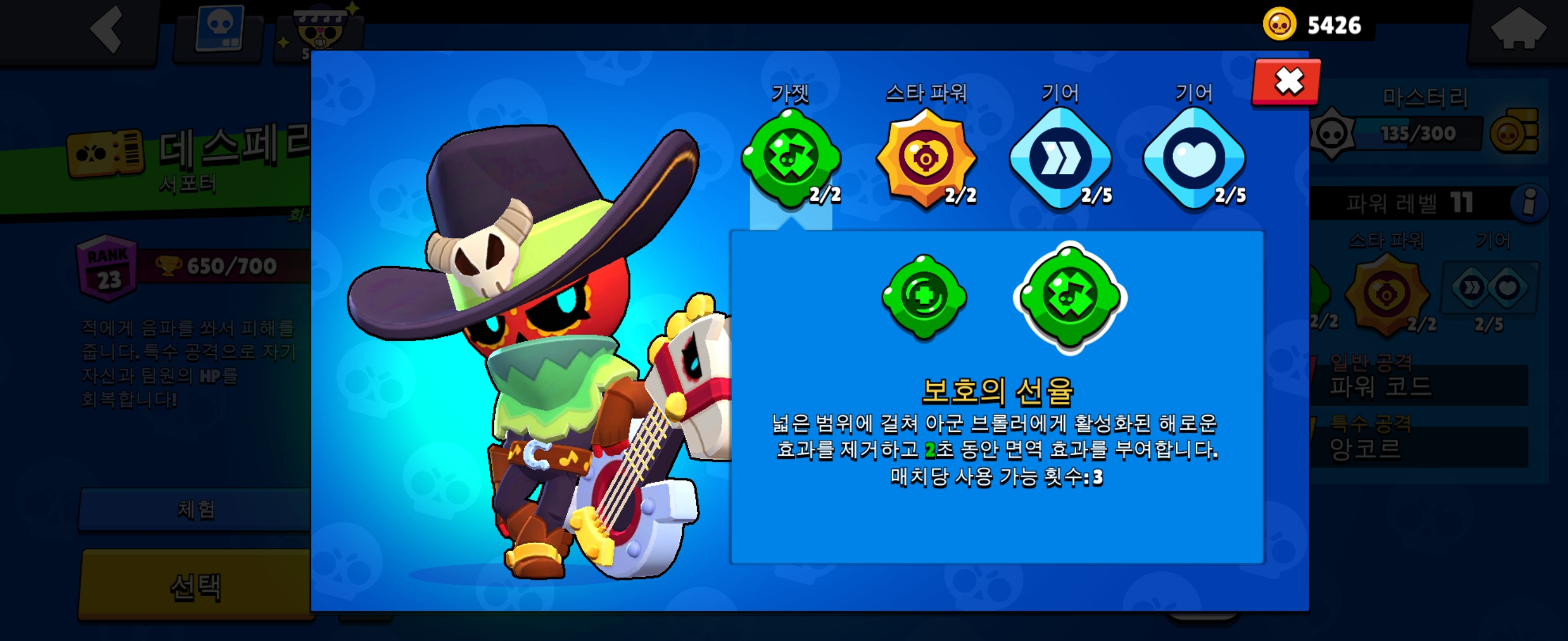 스타파워 1번 뮤직 테라피는 일반 공격도 아군을 700 회복합니다. 팀전은 꼭 이걸 장착하세요.