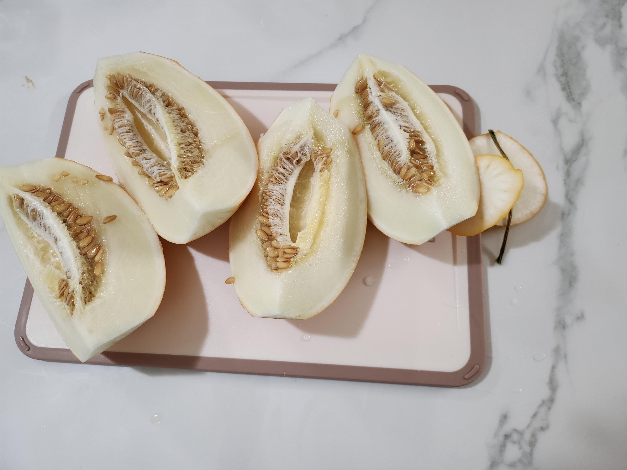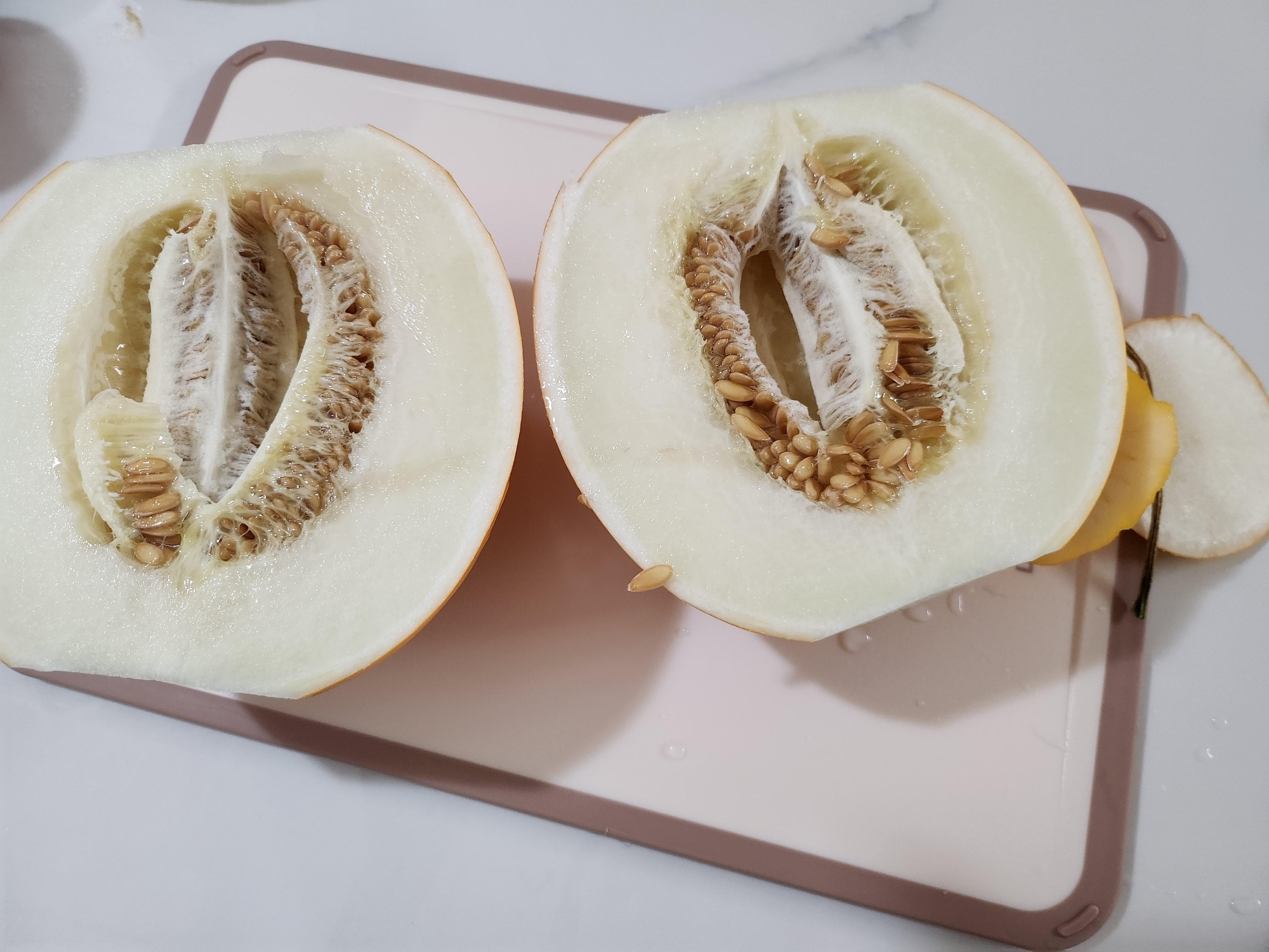 덜 달고 아삭거리는 맛, 멜론과 참외의 중간 맛이라고 표현해도 좋을 것 같아요.
