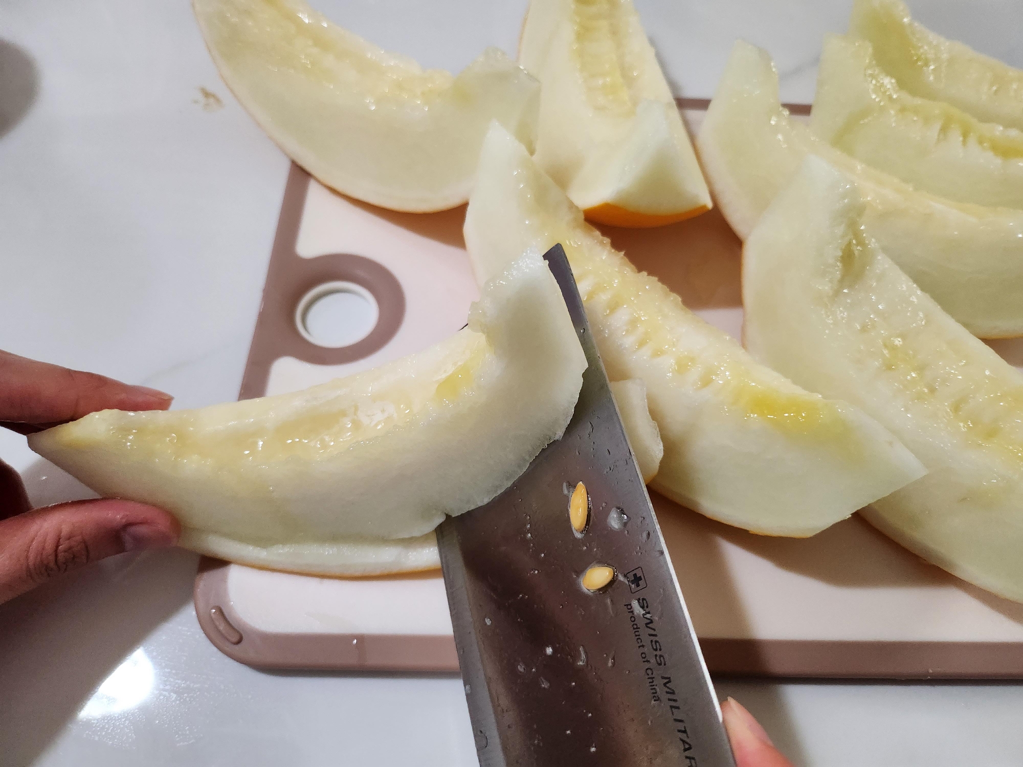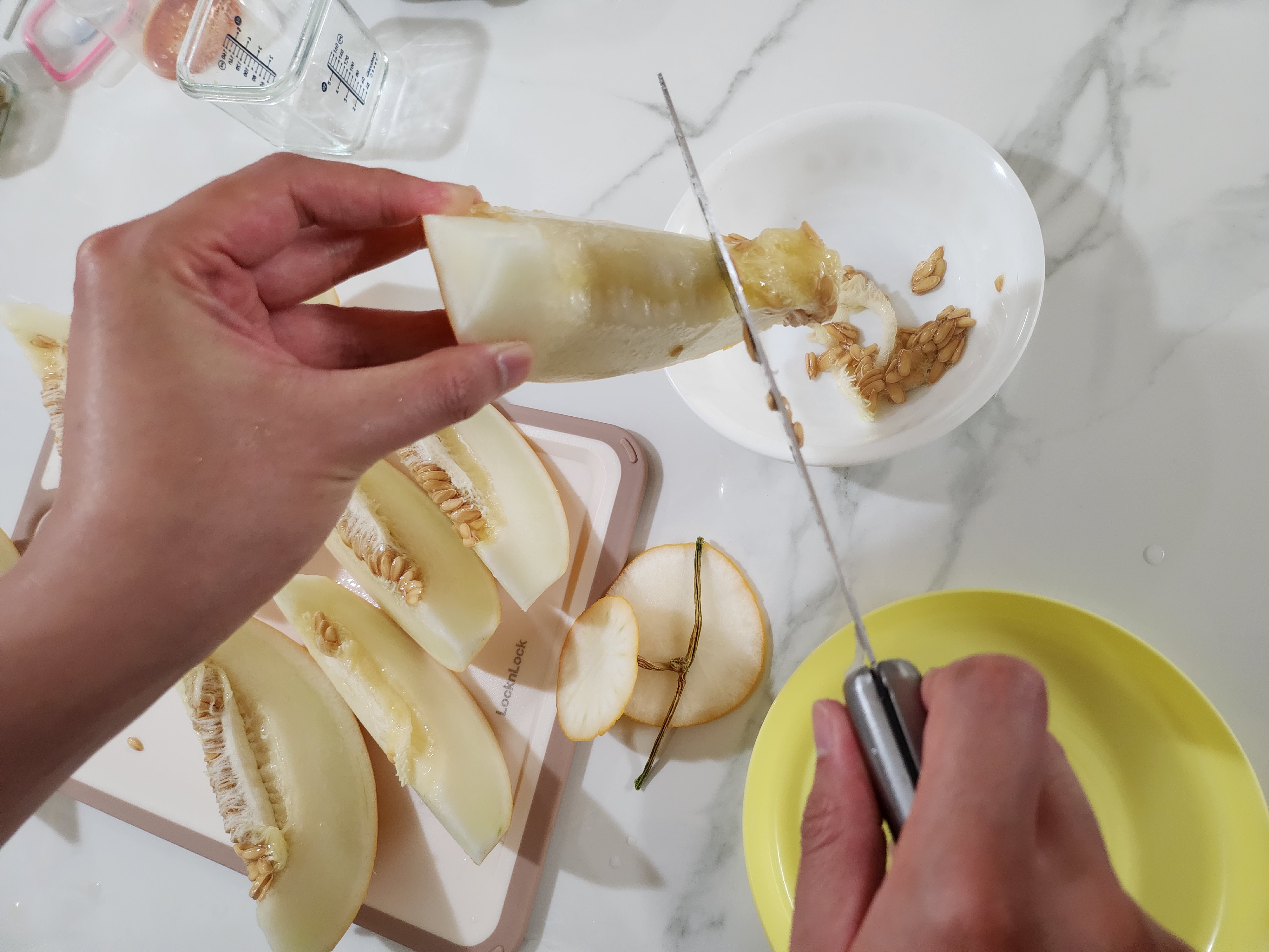자르는 법은 일반 멜론 자르는 법과 동일합니다.