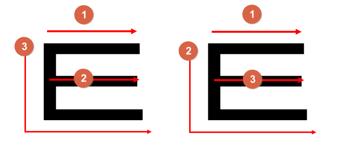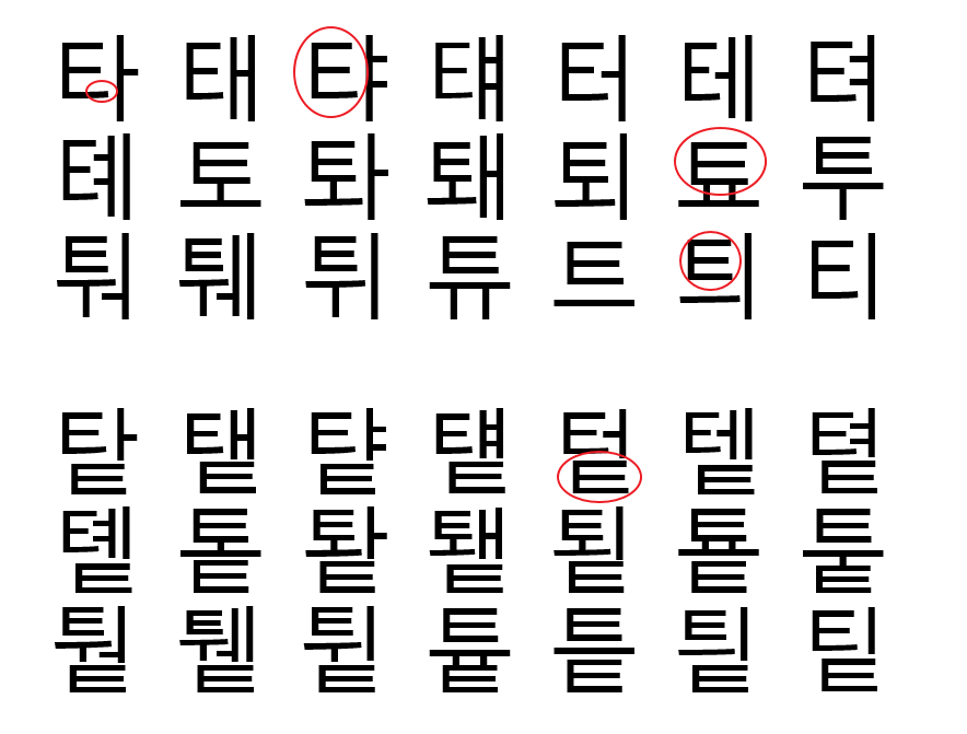 글씨 쓰기를 빠르고 잘 쓰려면 오른쪽처럼 디귿을 써서 자리를 확보하고 마지막에 가운데를 긋는 것도 좋은 방법 같습니다.