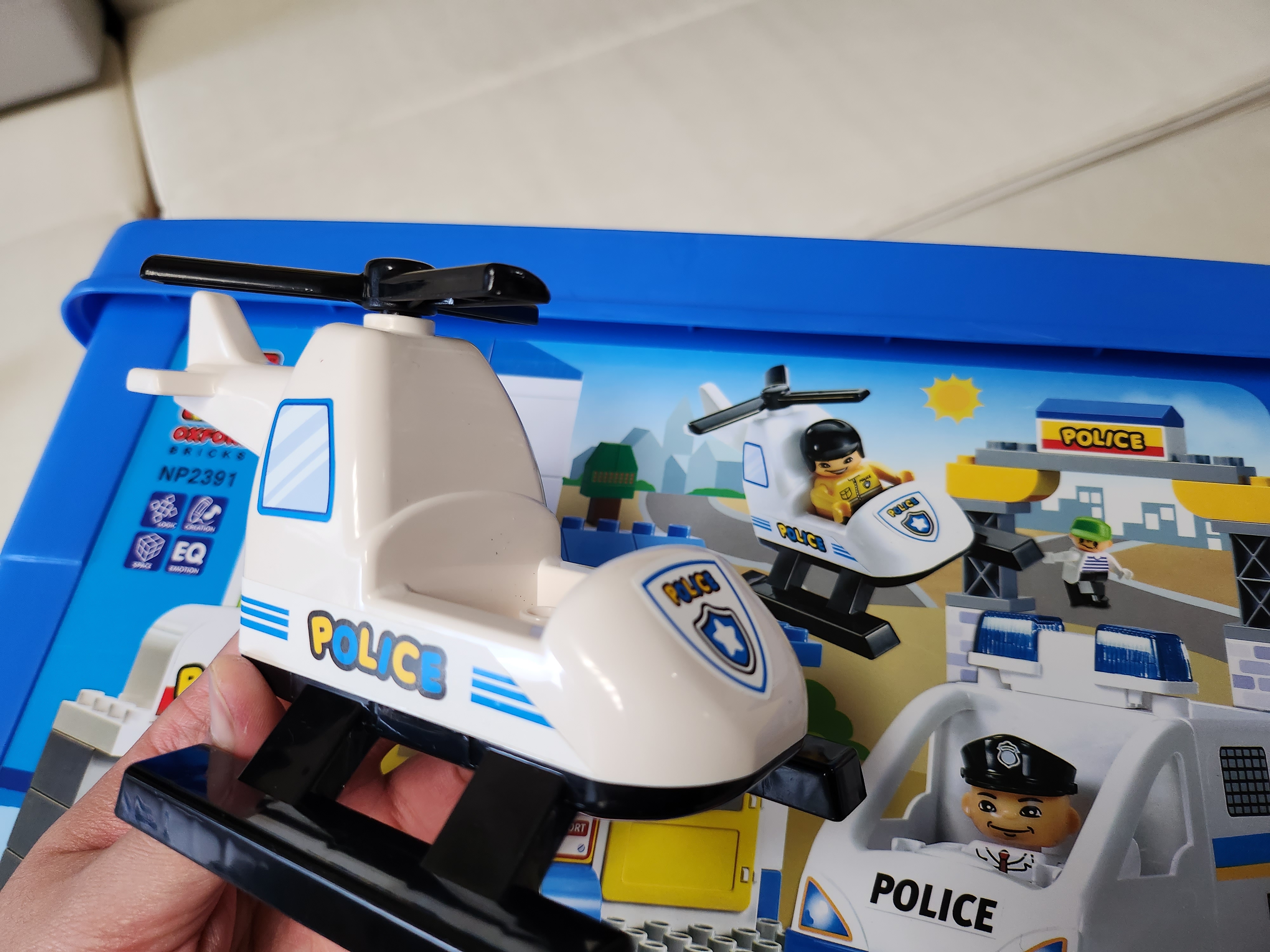 헬기제품, 경찰차, 오토바이까지 있어서 재미있는 놀이가 가능합니다.