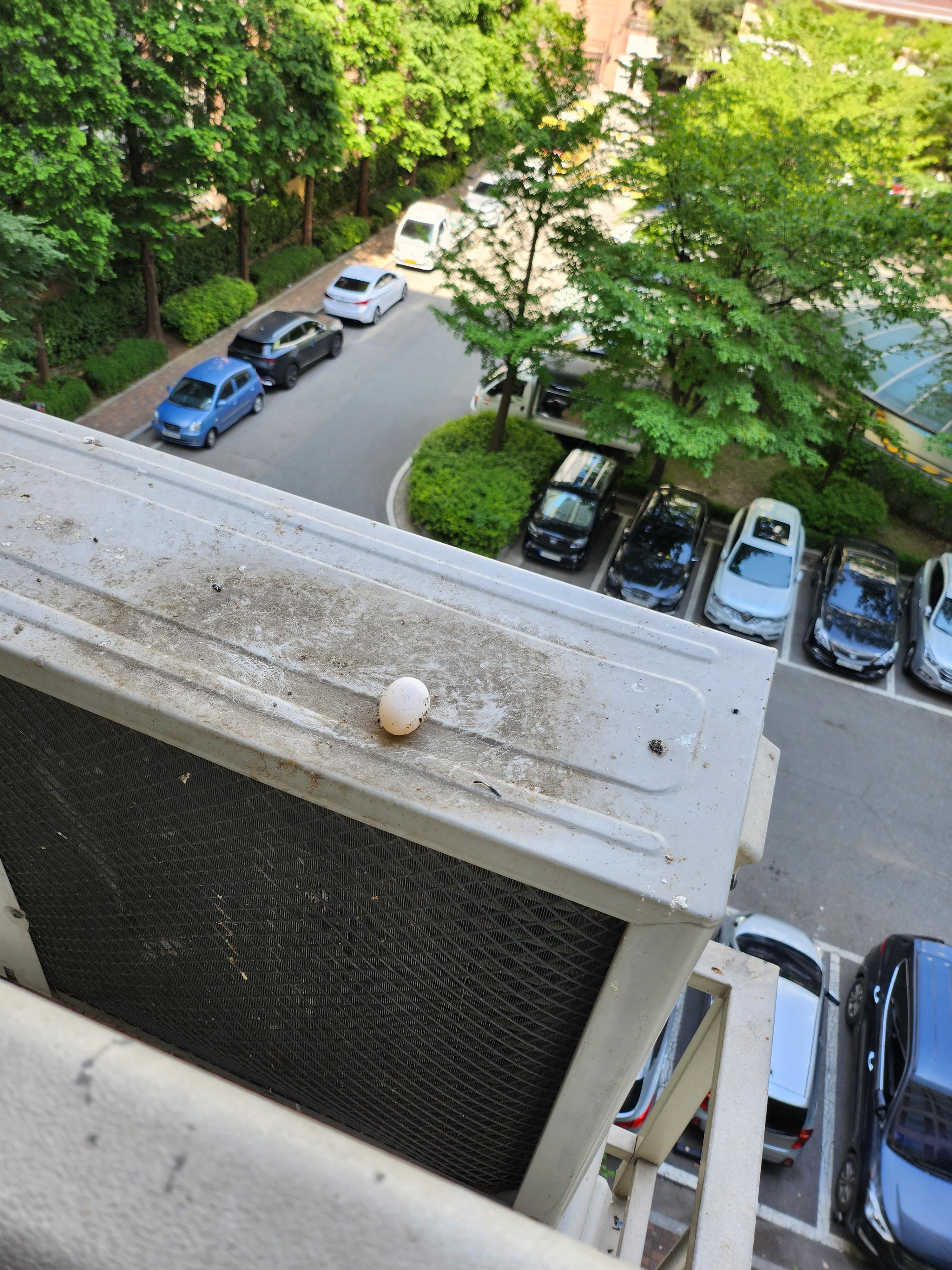 어느 날 에어컨 실외기 위에 알이 덩그러니 놓여있었습니다.