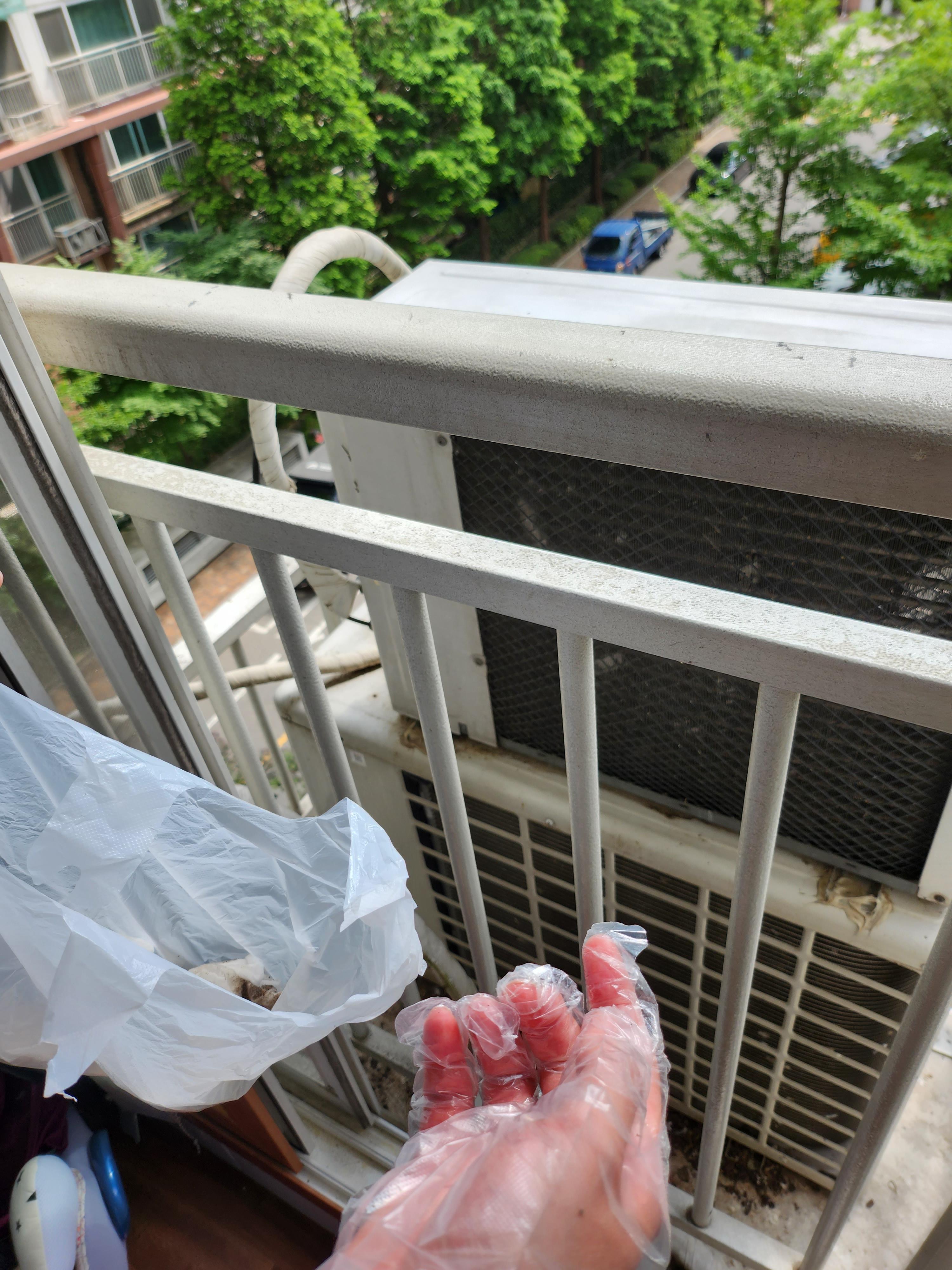 실외기 커버 위에 앉는 모습을 못 봤지만 난간에 한 번 와서 쫓아냈습니다.