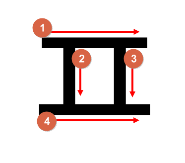 옆으로 누인 반듯한 사다리처럼 생겼습니다.