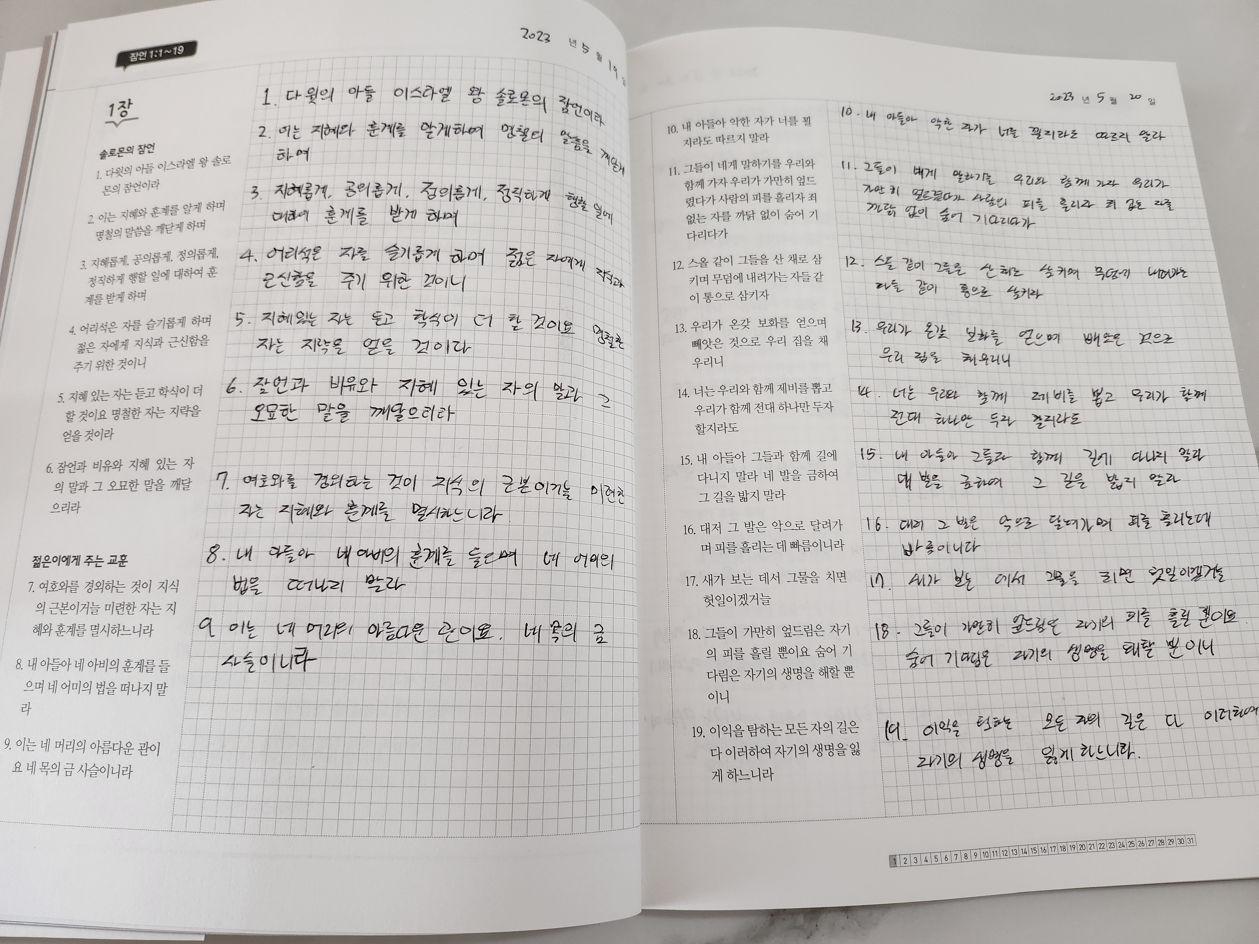 성경 잠언을 1장부터 31장까지 꾸준히 썼습니다.