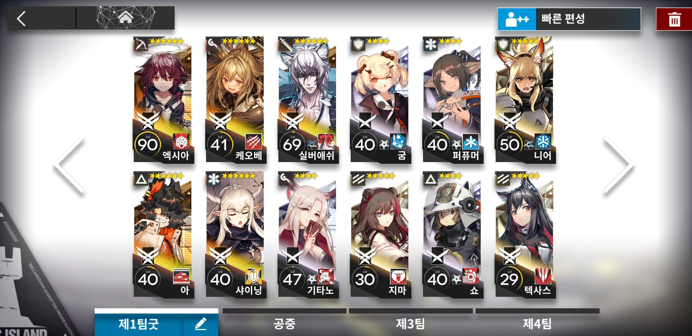 다음과 같이 적절한 케릭터를 적절한 타이밍에 적재적소에 배치하여 스토리를 공략한다.