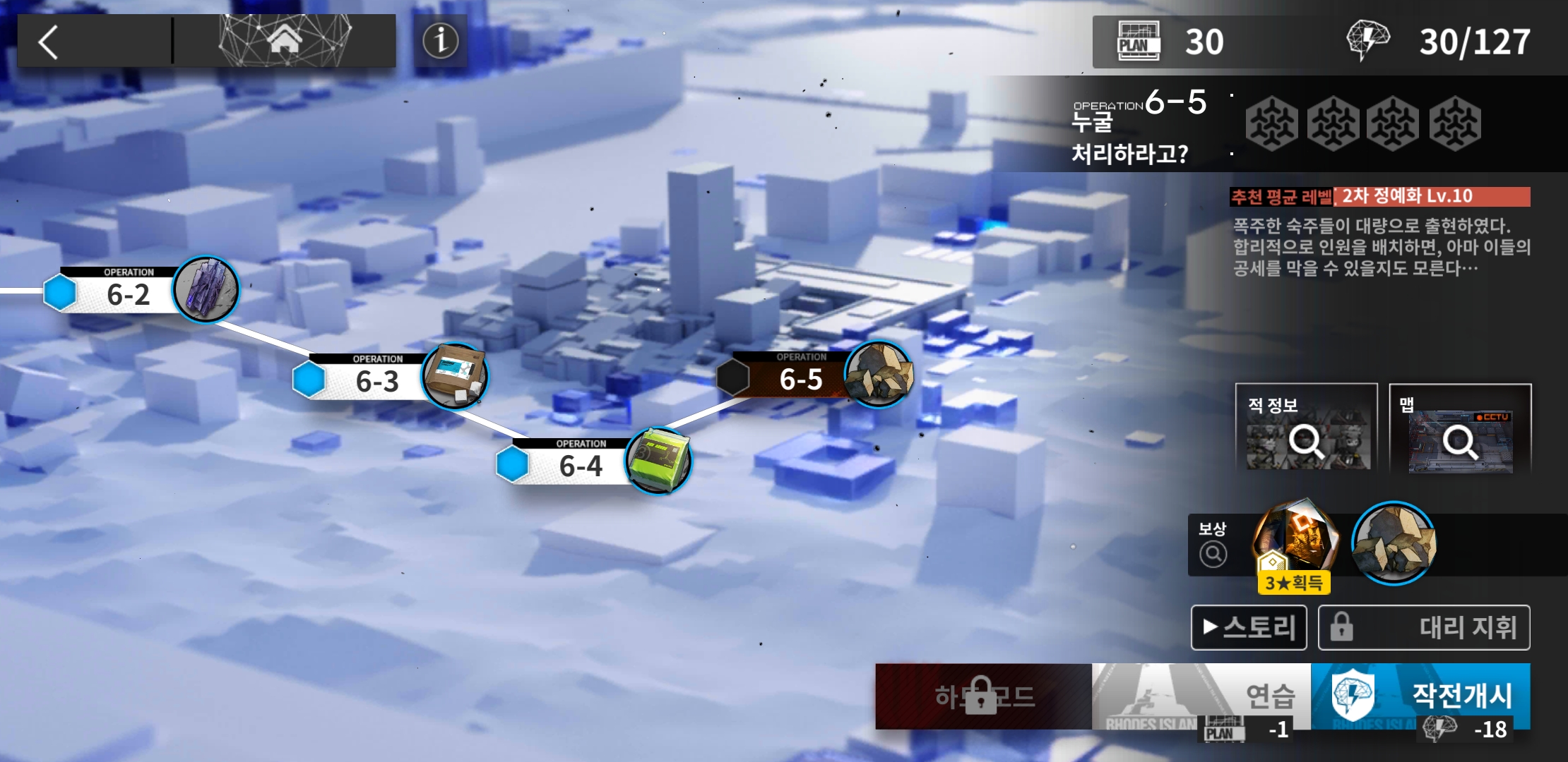 메인 스토리 진행이 가능하고 적을 빠짐없이 3별로 클리어하면 하드모드가 열린다.