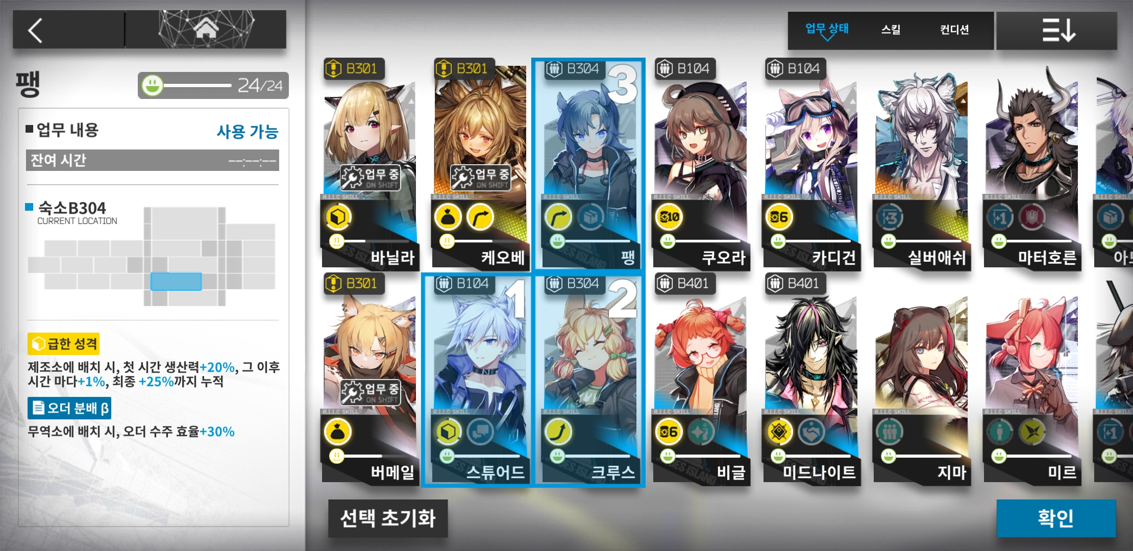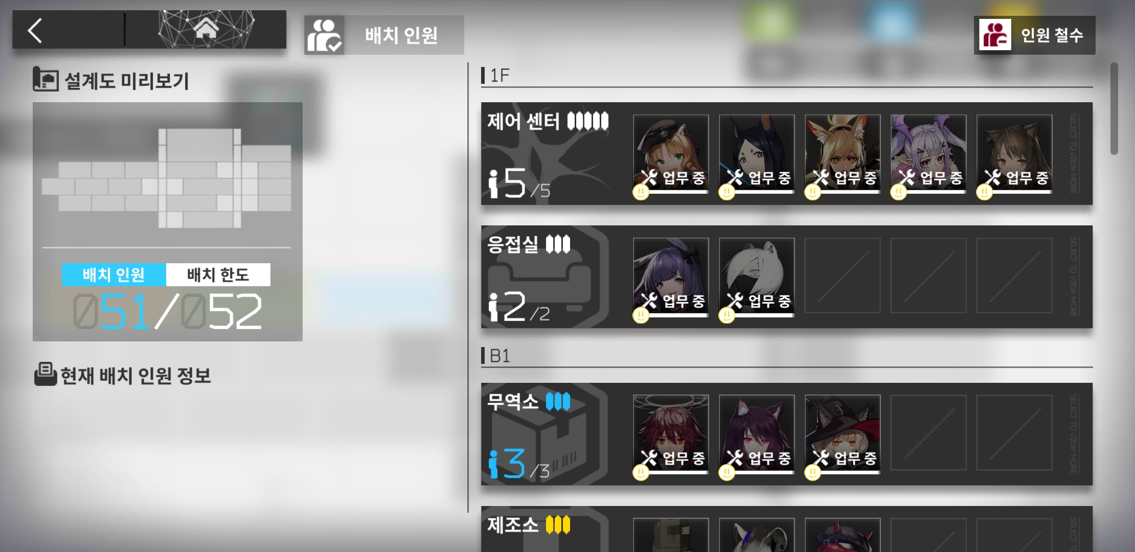 건물에 적합한 케릭터를 배치하여 효율을 높인다.