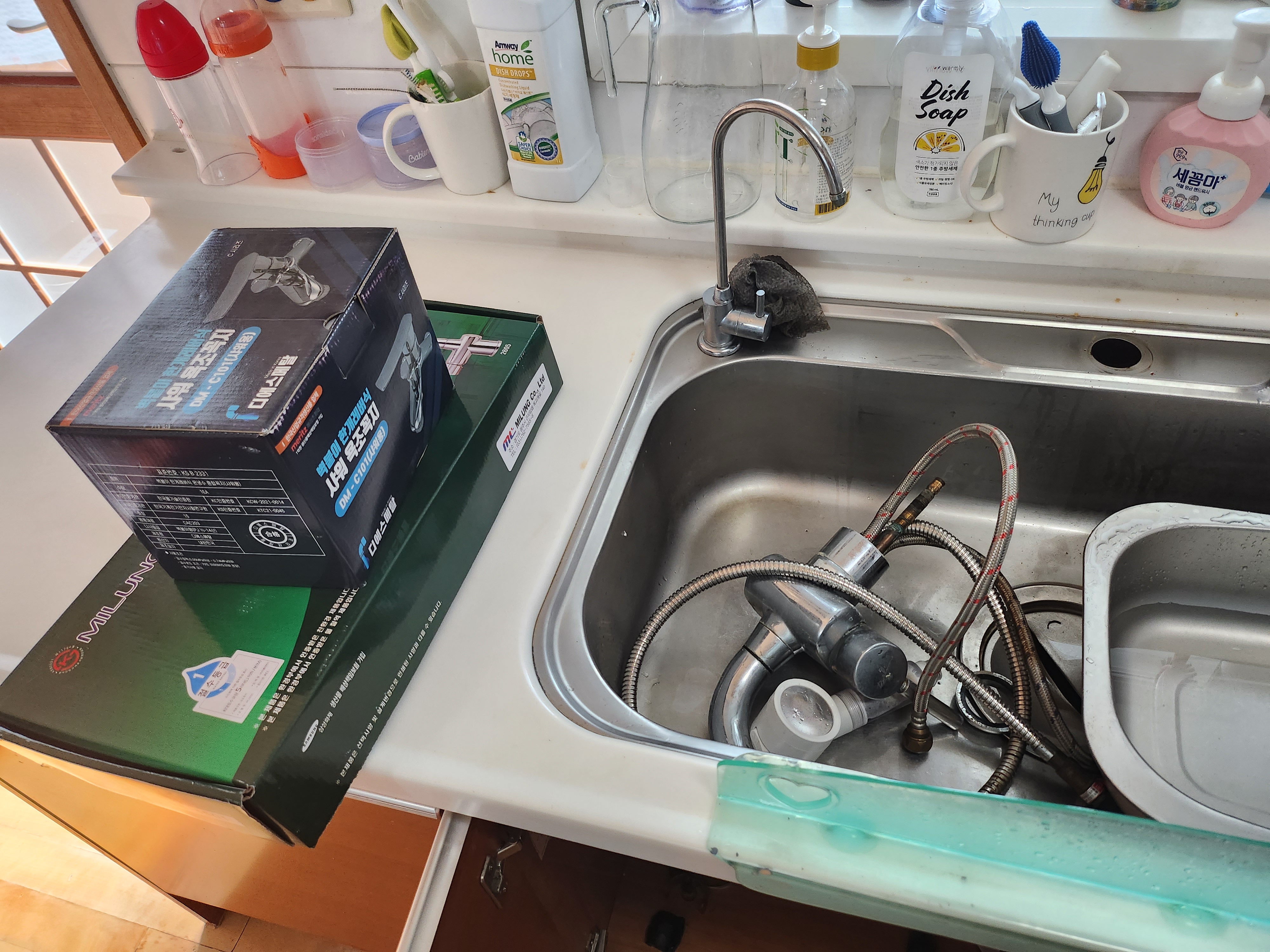 업체를 불러 상담하고 수전 교체를 진행했습니다.