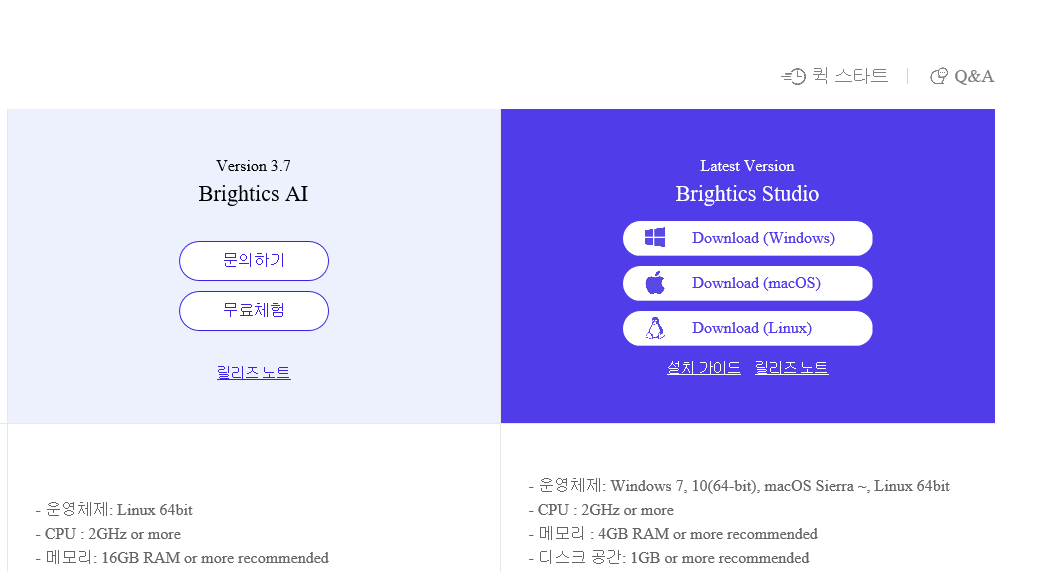 다운로드 페이지에 가면 Brightics AI와 Studio가 있는데 여기서 오픈소스인 Studio를 다운로드하자.