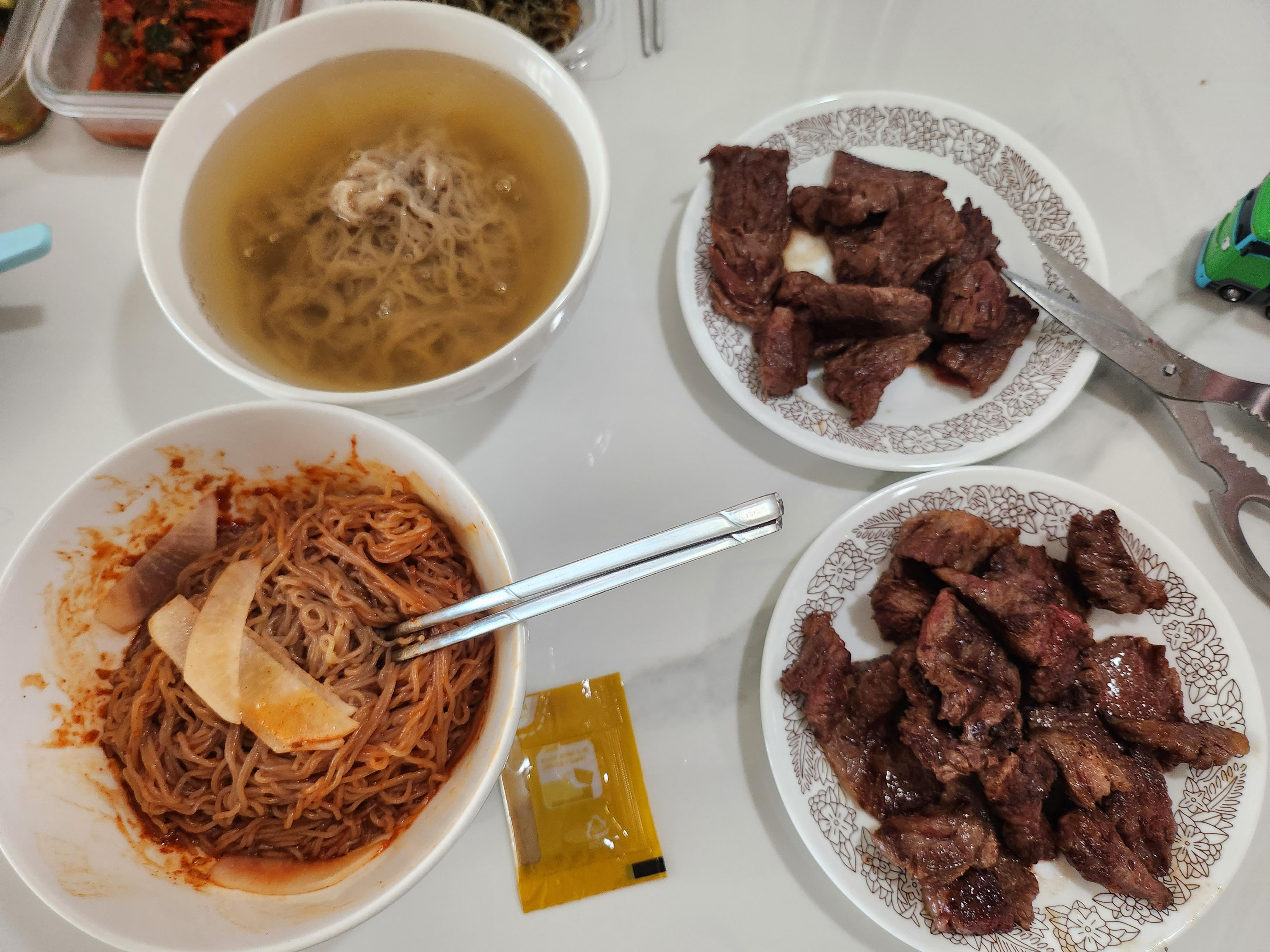 저렴한 냉면에 비싼 고기를 같이 먹으니 배보다 배꼽이 더 큰 식사가 되었네요.