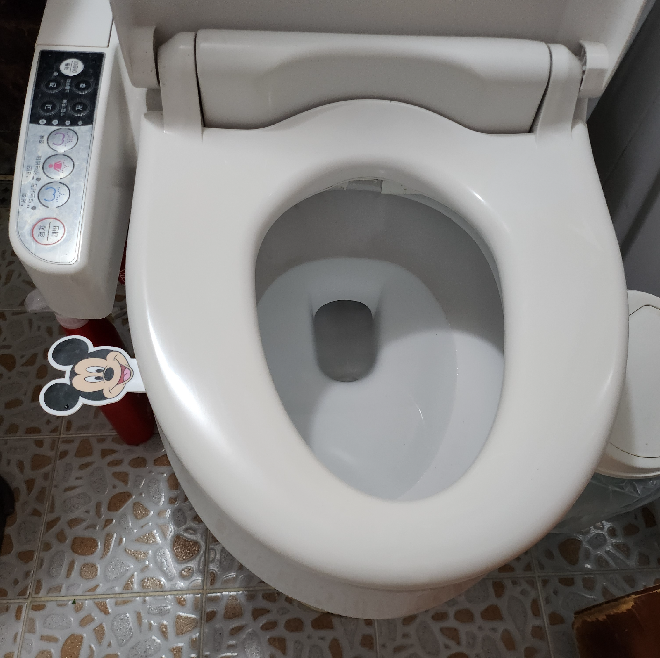 저희 아이는 하얀색 물 내리는 버튼이 달린 변기를 좋아해요.