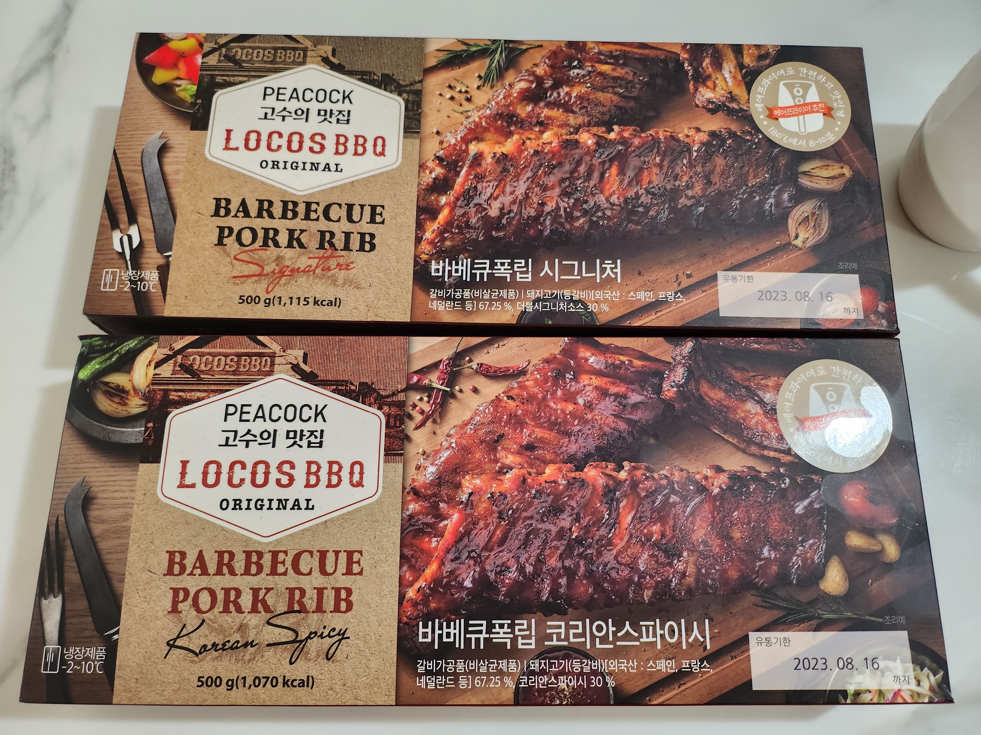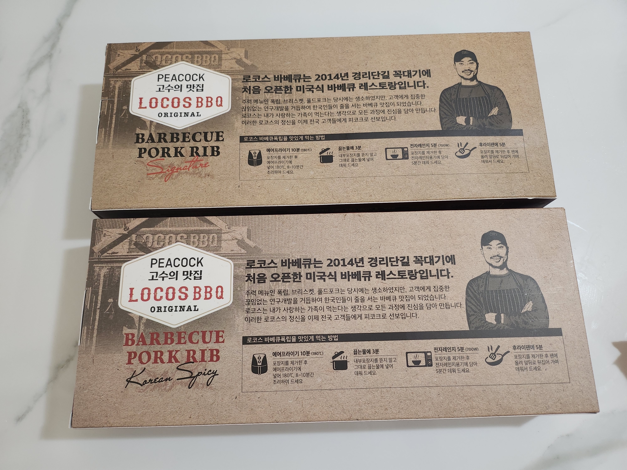 피코크 로코스(Peacock Locos BBQ) 바베큐폭립, 시그니처와 코리안스파이시 맛을 구매했습니다.