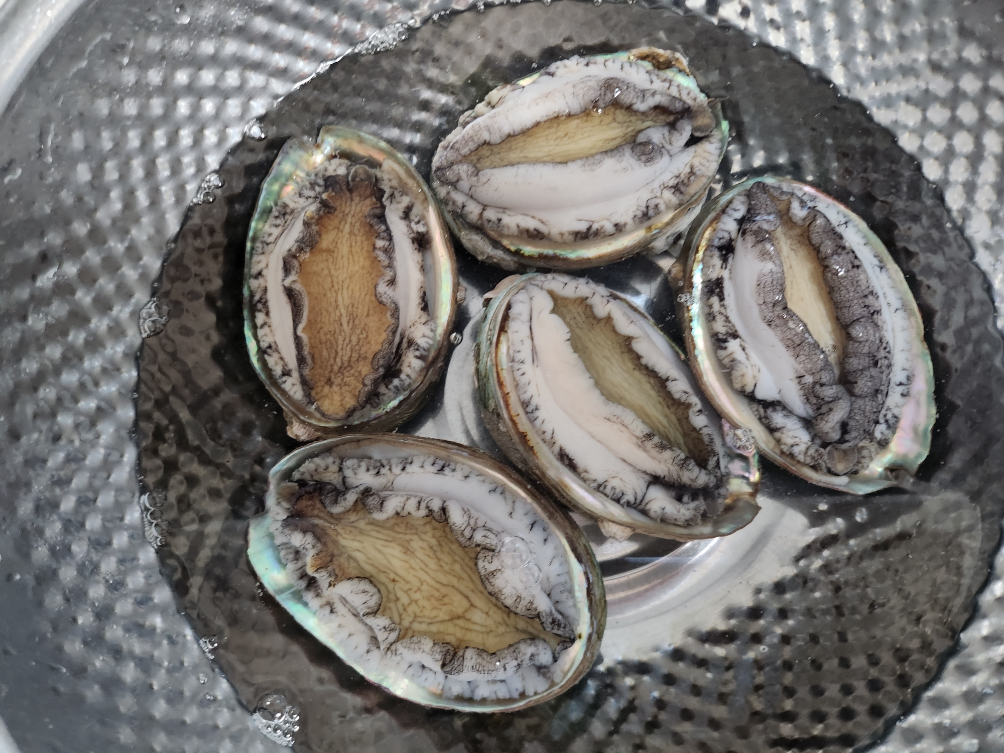 시장에서 큰 전복 5마리를 만 원에 사 왔습니다.