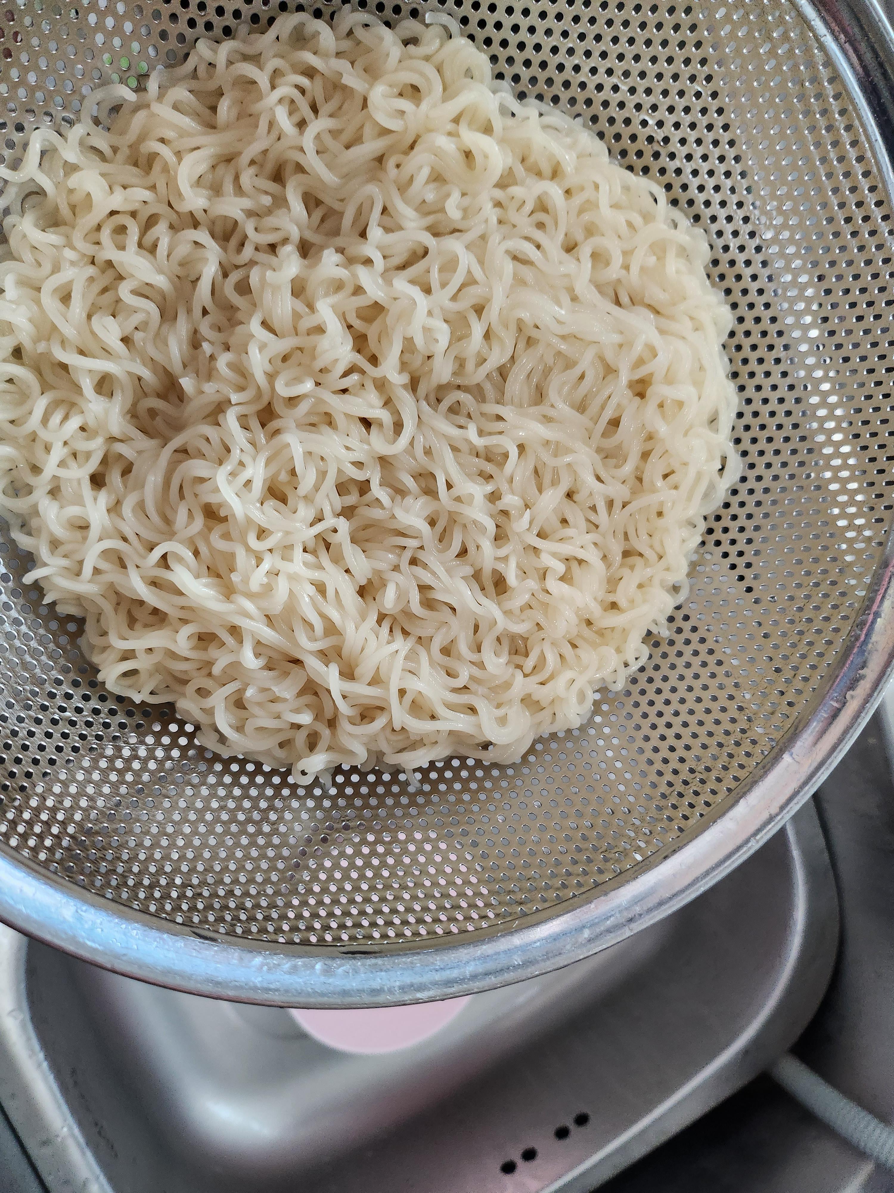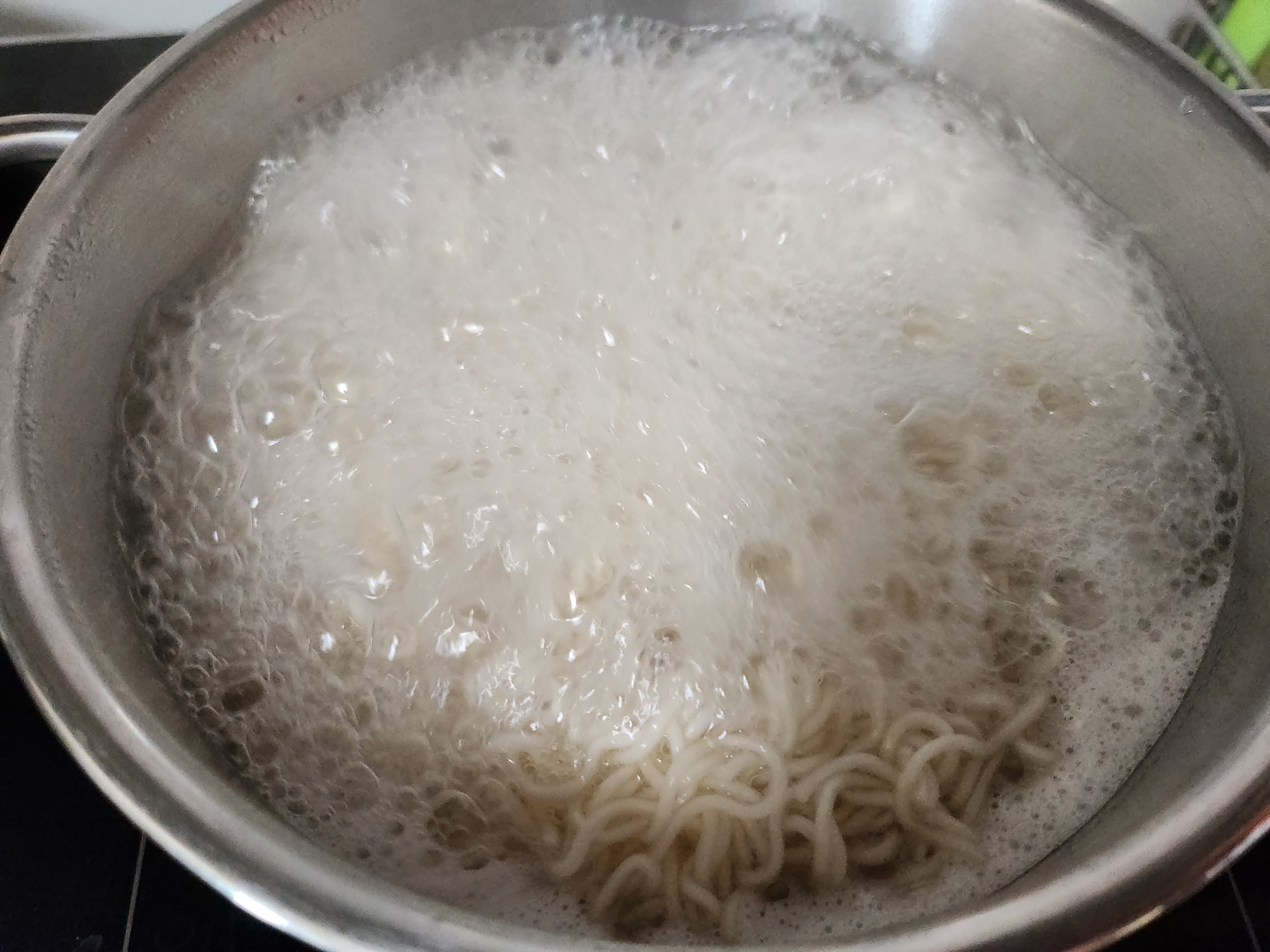 끓는 물 600ml에 면을 넣고 3분간 끓입니다.