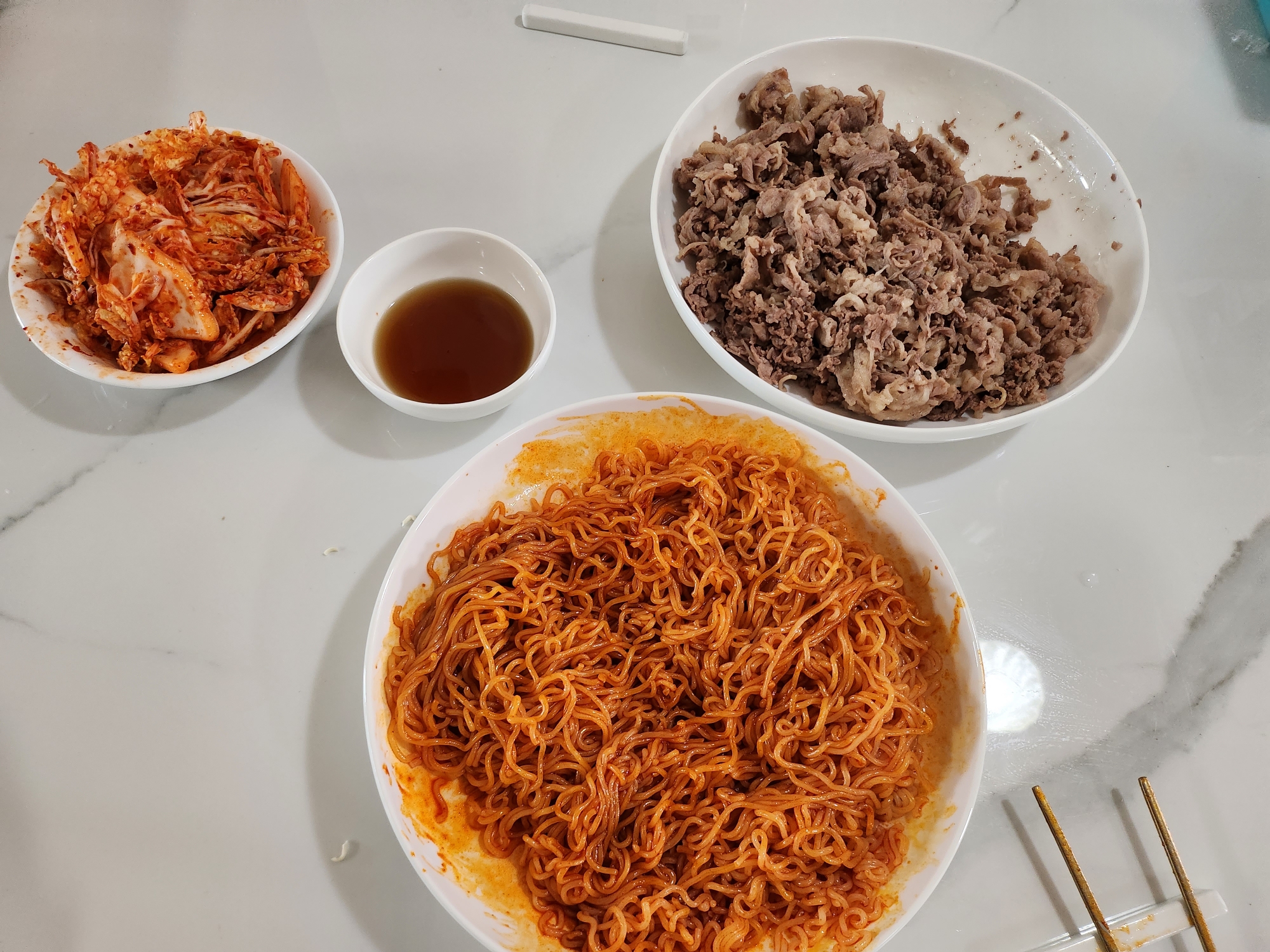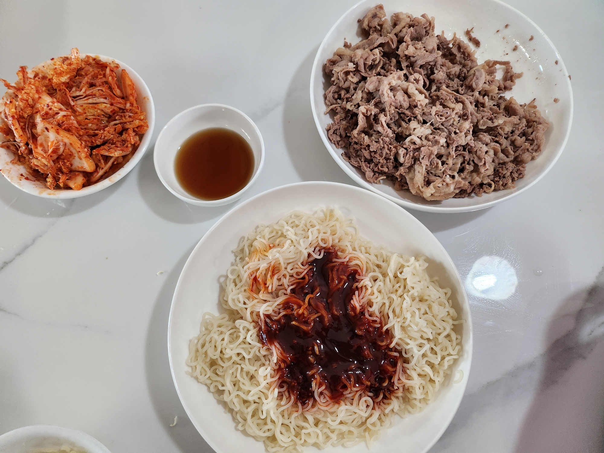 비빔면은 어떤 고기와도 잘 어울립니다.