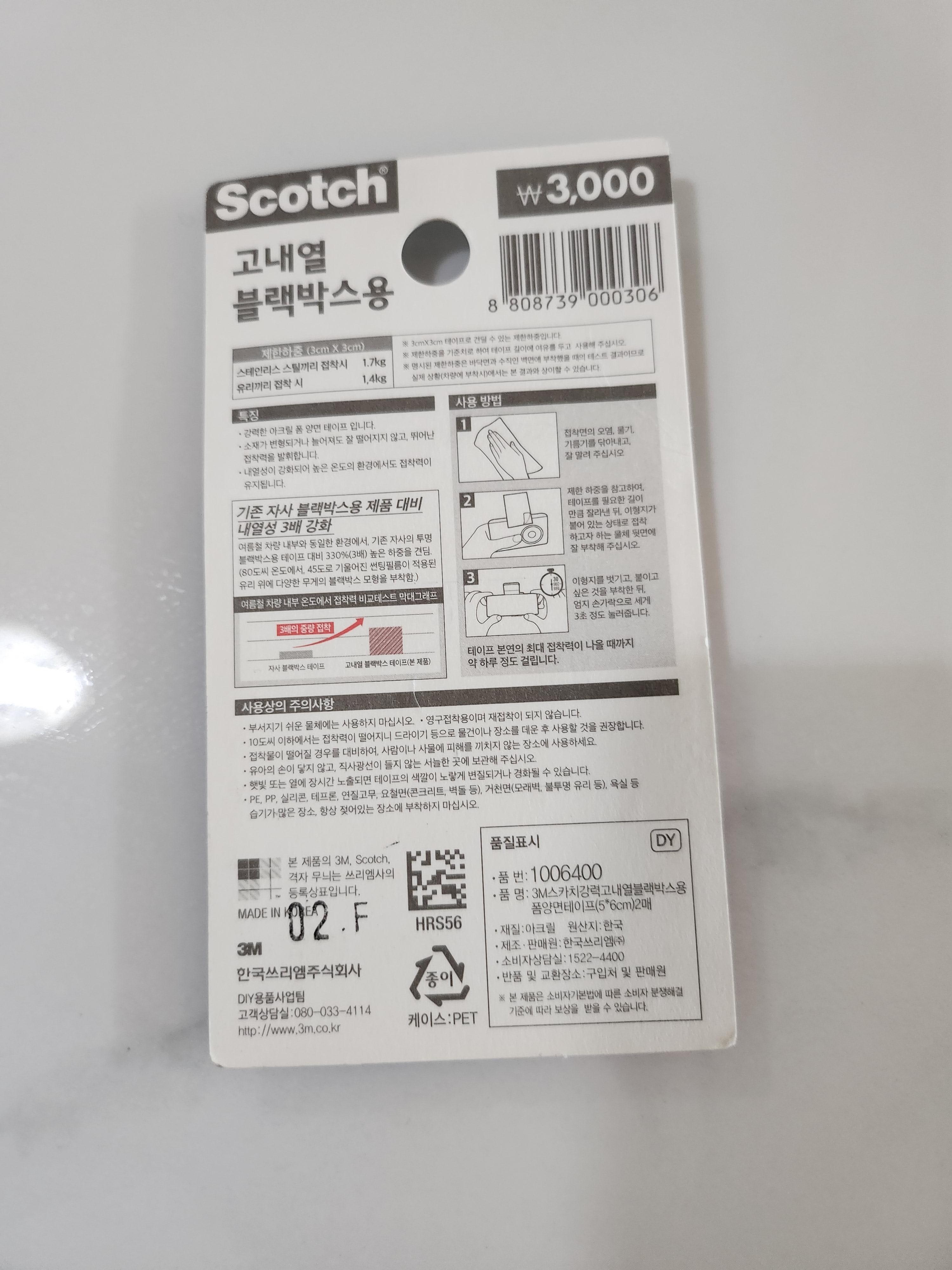 다이소에서 고내열 블랙박스용 양면테이프를 3000원에 구매했습니다.