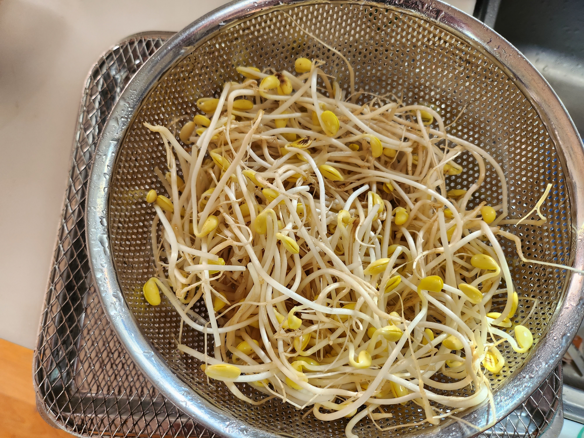 콩나물에 상태가 안 좋은 콩과 뿌리 부분은 제거합니다.