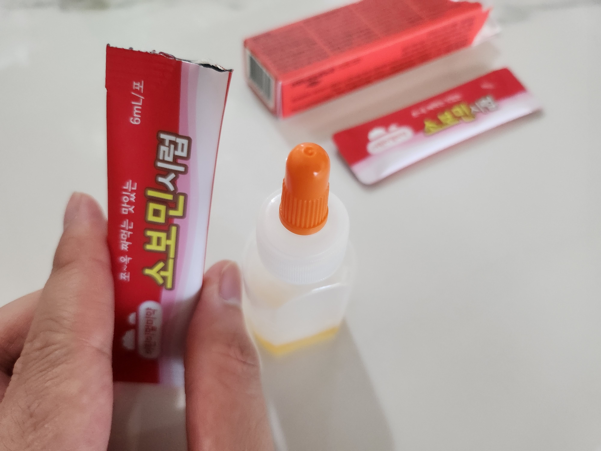1포에 6ml가 들어있어서 미리 약통에 3ml를 덜고 나머지를 먹였습니다.