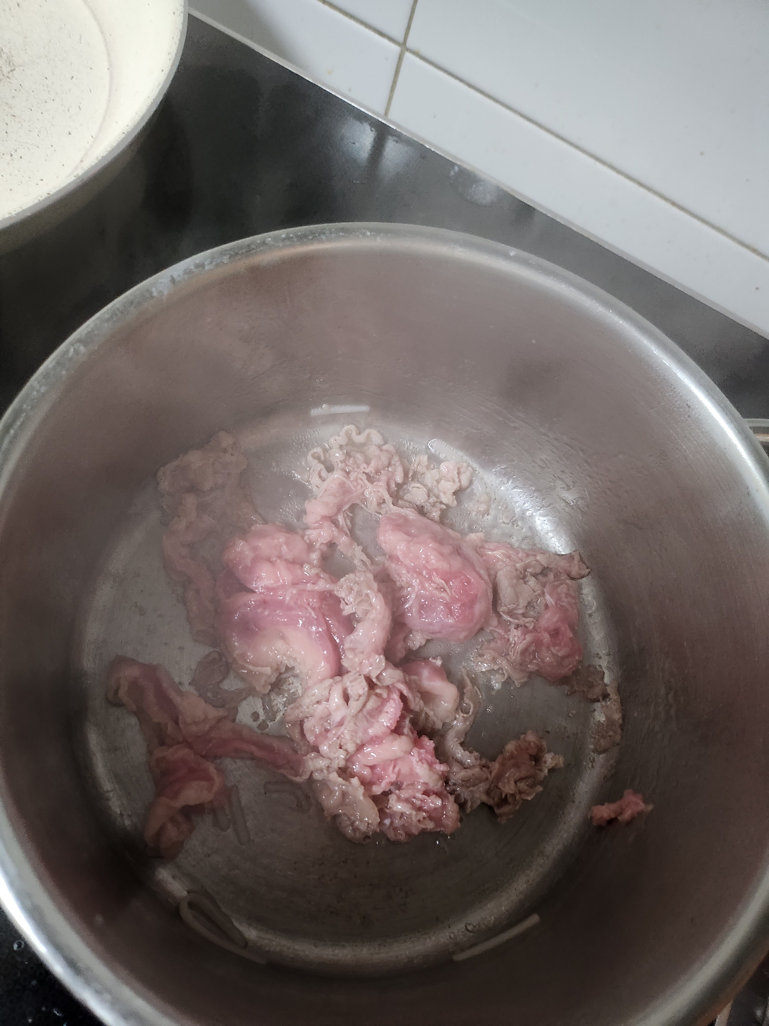 3. 같은 냄비에 우삼겹을 넣고 살짝 구워줍니다.