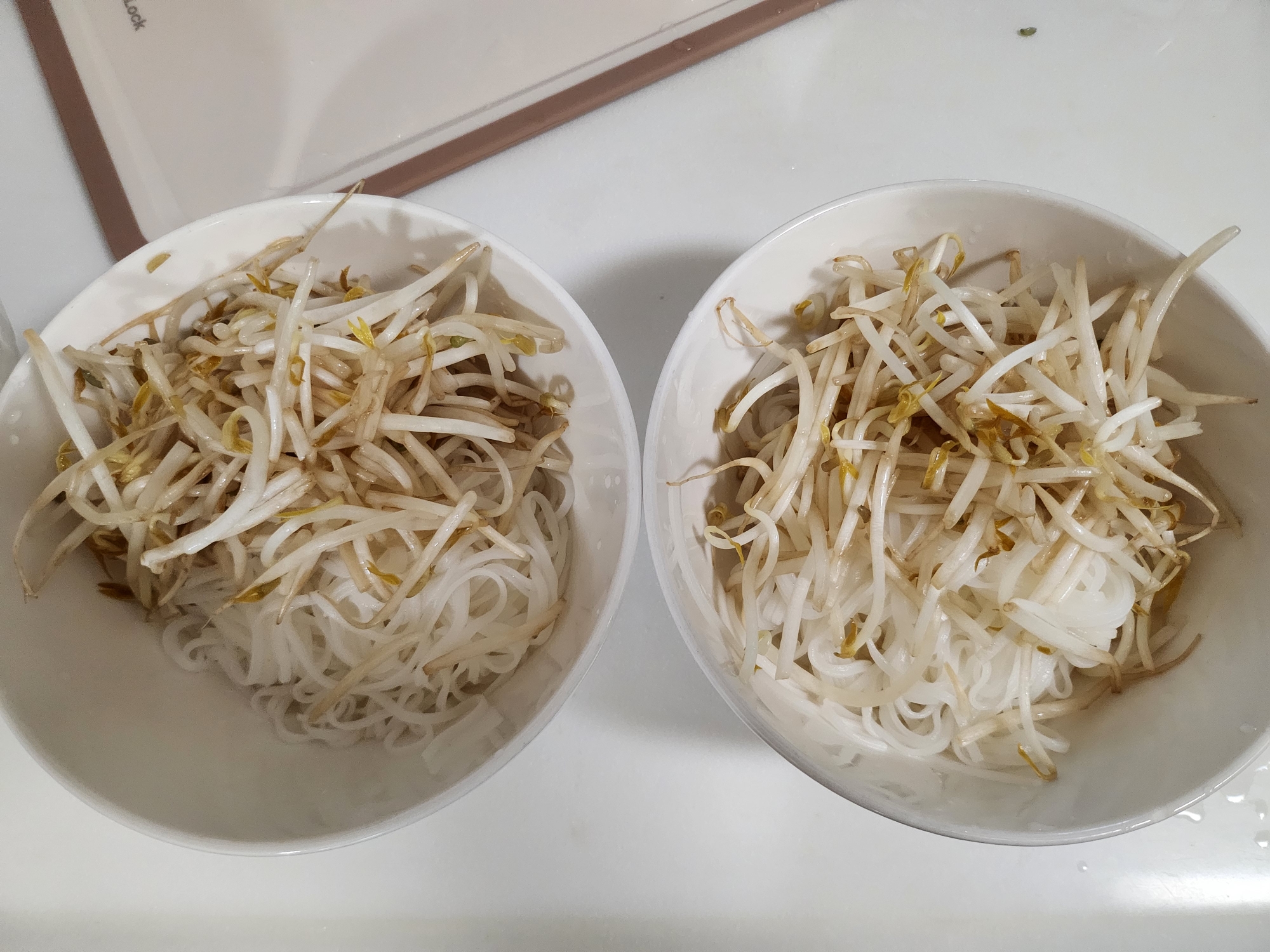 2. 숙주를 씻어 면과 함께 그릇에 담아둡니다.