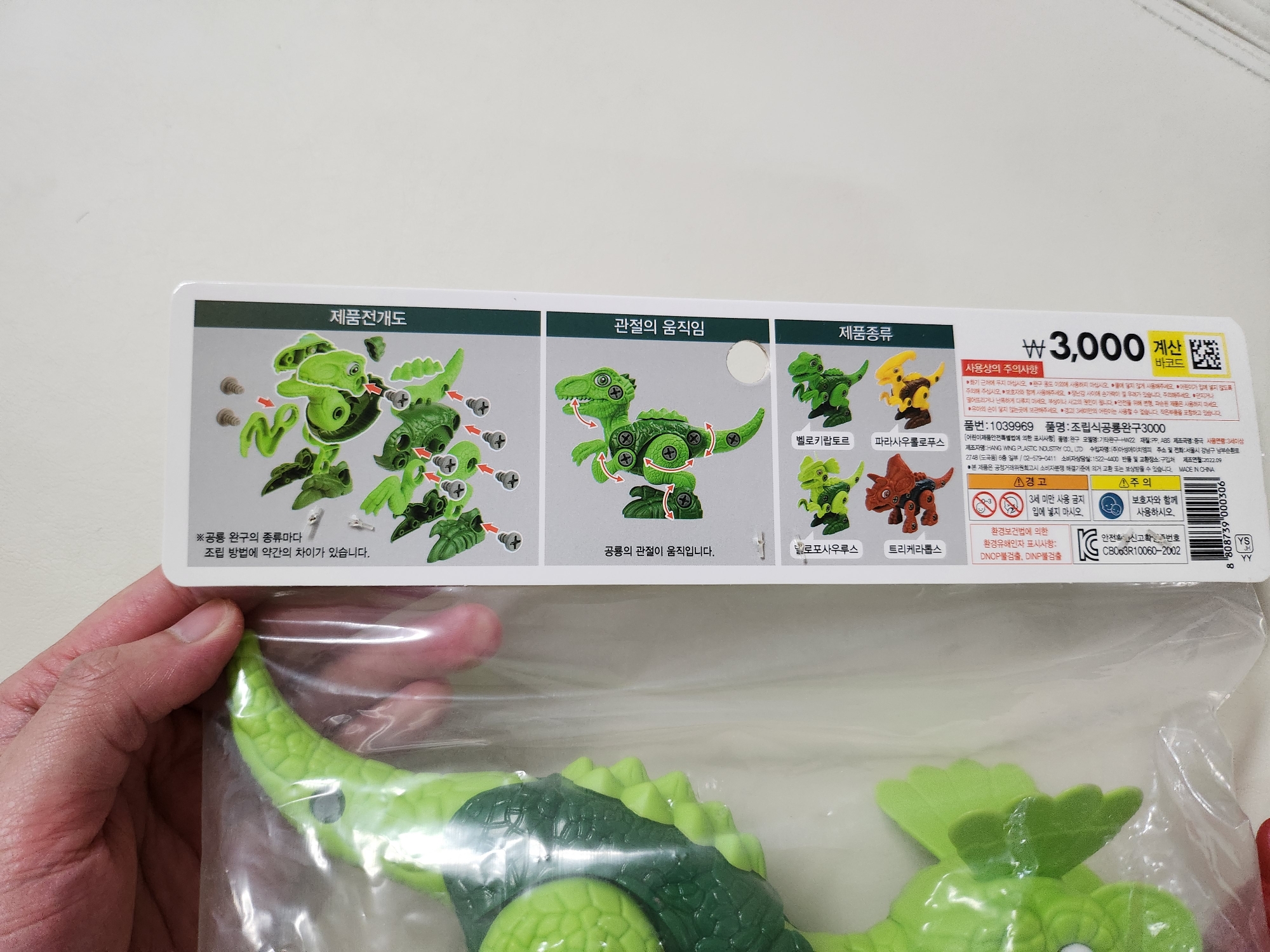다이소에 가니 공룡을 나사로 조립하고 분해하는 장난감이 있어서 3,000원에 구매했습니다.