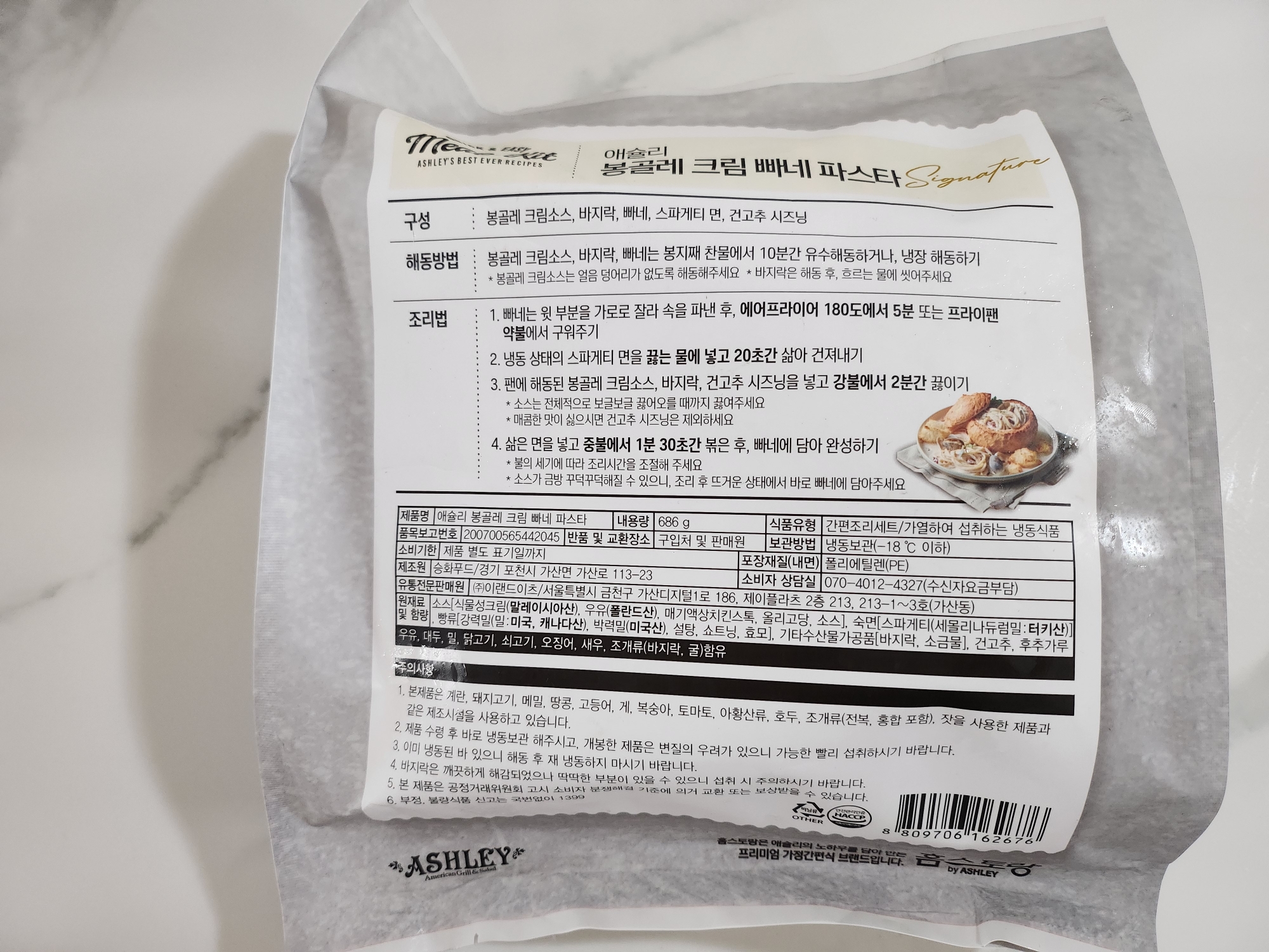 애슐리 홈레스토랑 봉골레 크림 빠네 파스타를 먹었습니다. 올해 초 한 번 먹고 생각나서 두 번째 먹는 밀키트입니다. 유통기한은 길지 않아 빨리 먹어야 합니다. 2~3인분입니다. 가격은 타임 딜