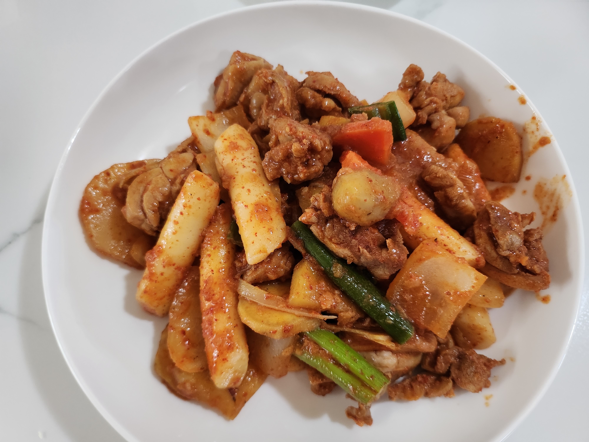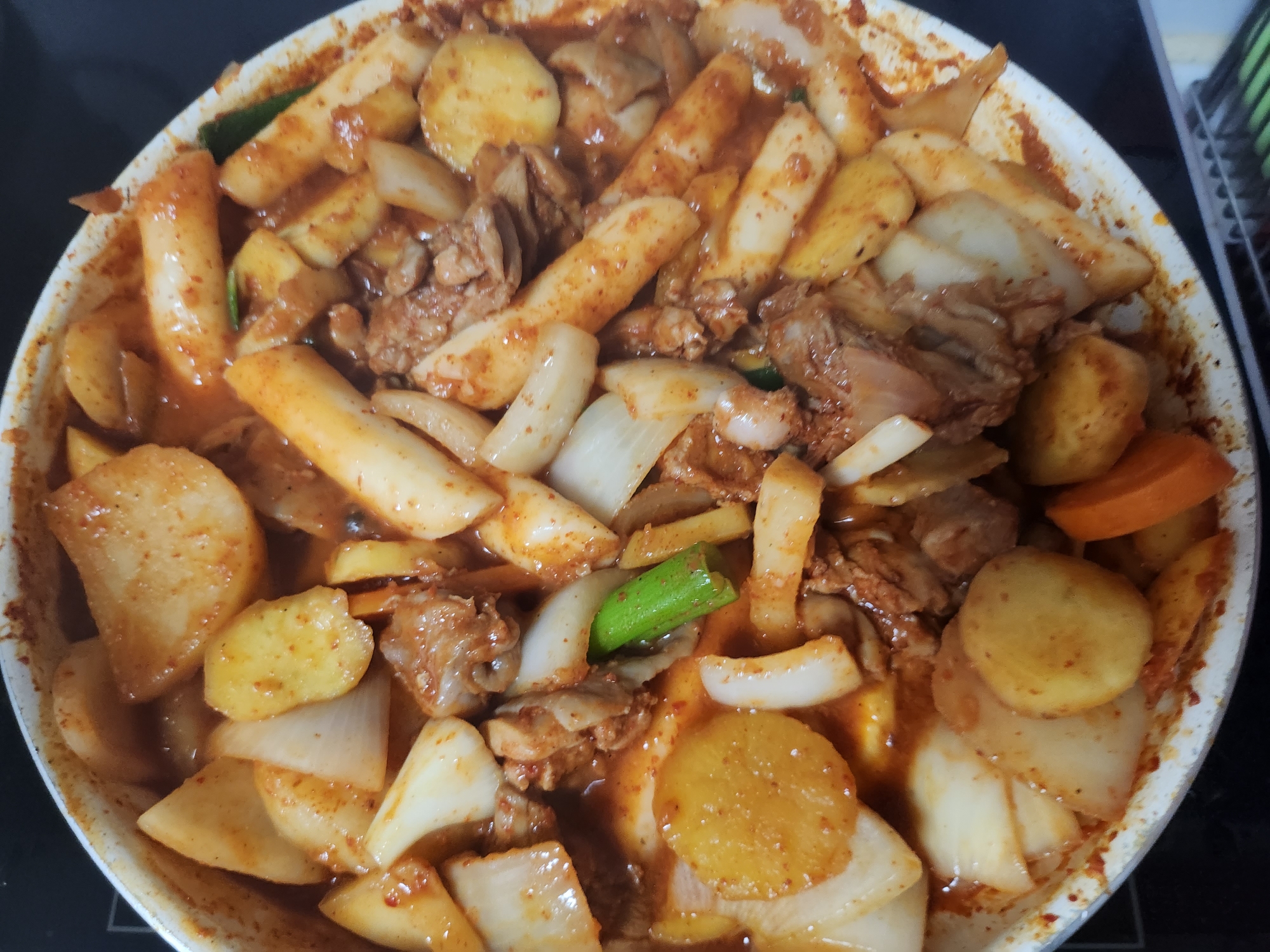 닭도리탕(닭볶음탕)인데 떡이 들어서 떡도리탕입니다.