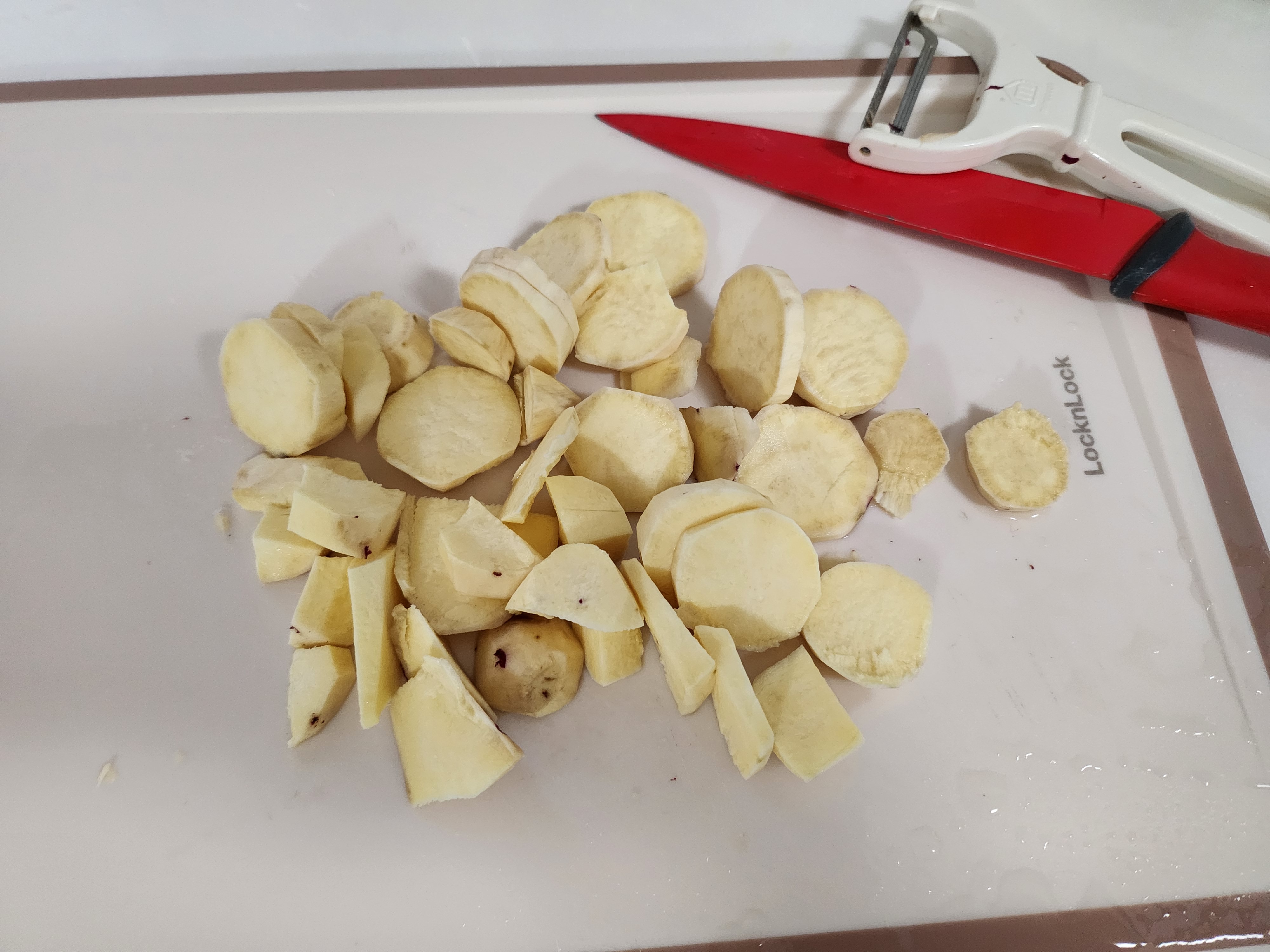 잘 익지 않는 고구마와 당근 감자를 먼저 익히는 것이 좋습니다.