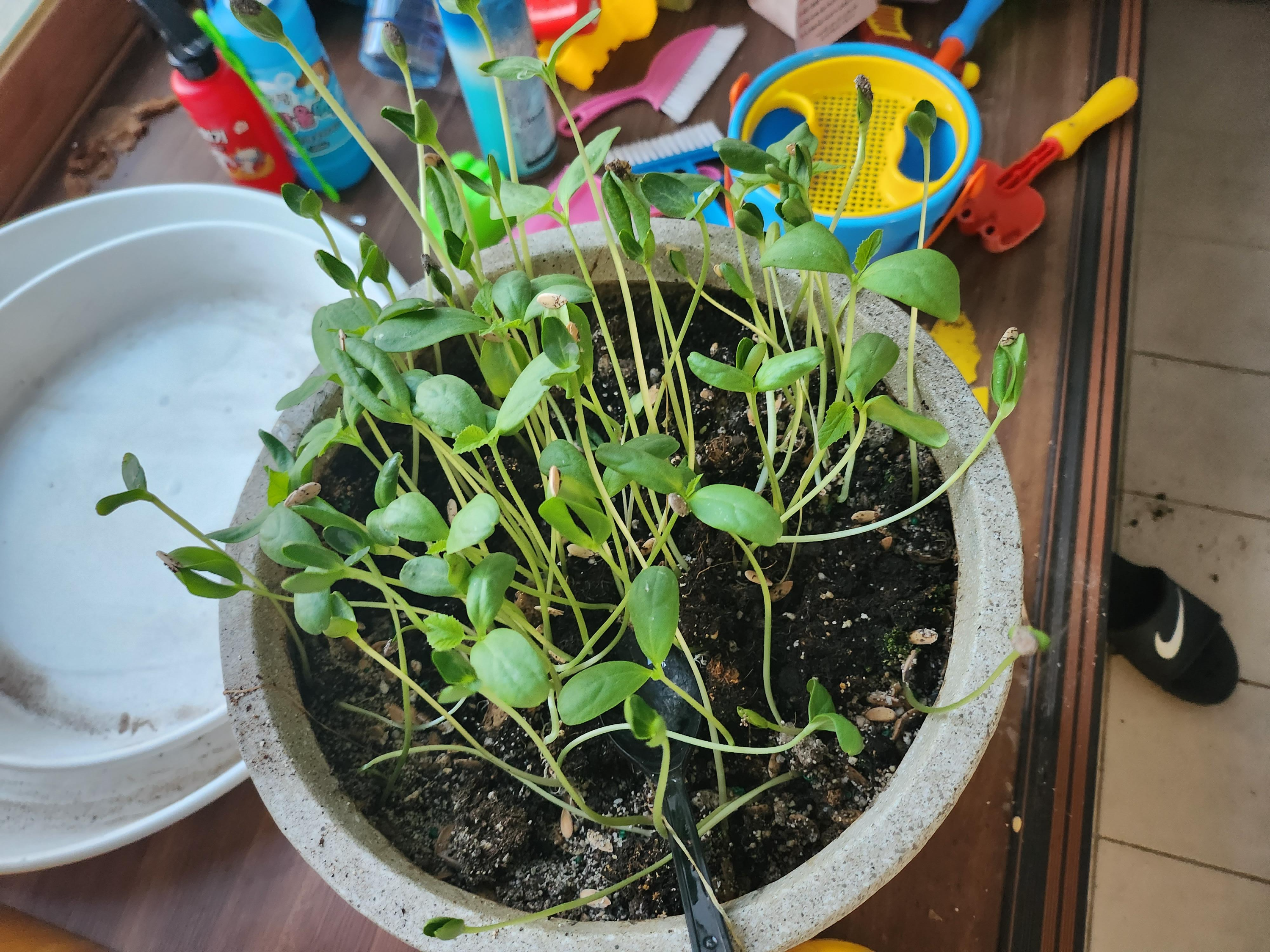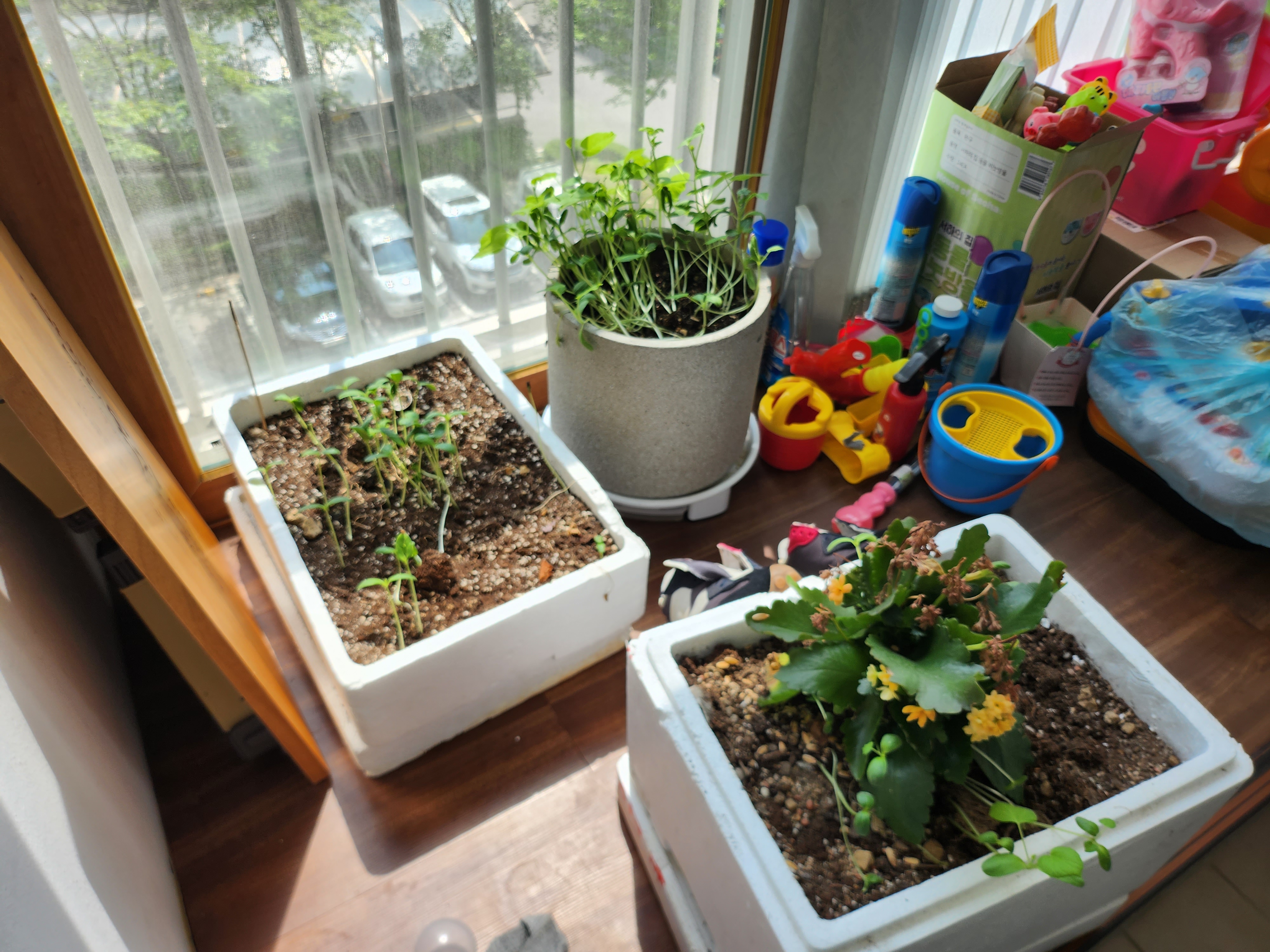 씨를 심었다기보단 첫째와 장난을 친다고 화분에 씨앗을 올리고 물을 잔뜩 뿌려주었습니다.