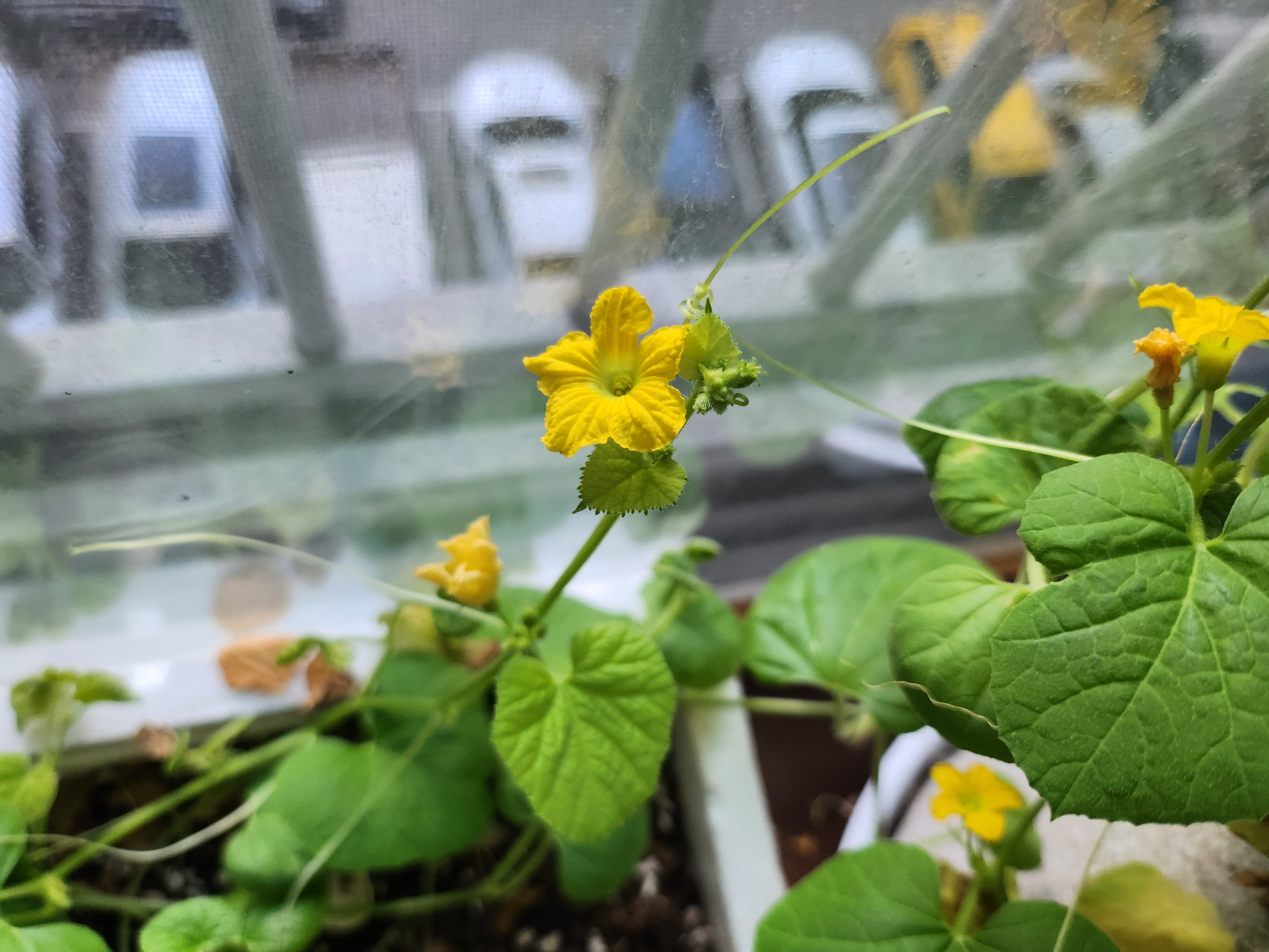 멜론을 키우기 시작한 지 3개월이 지난 오늘 노란 꽃이 폈습니다.
