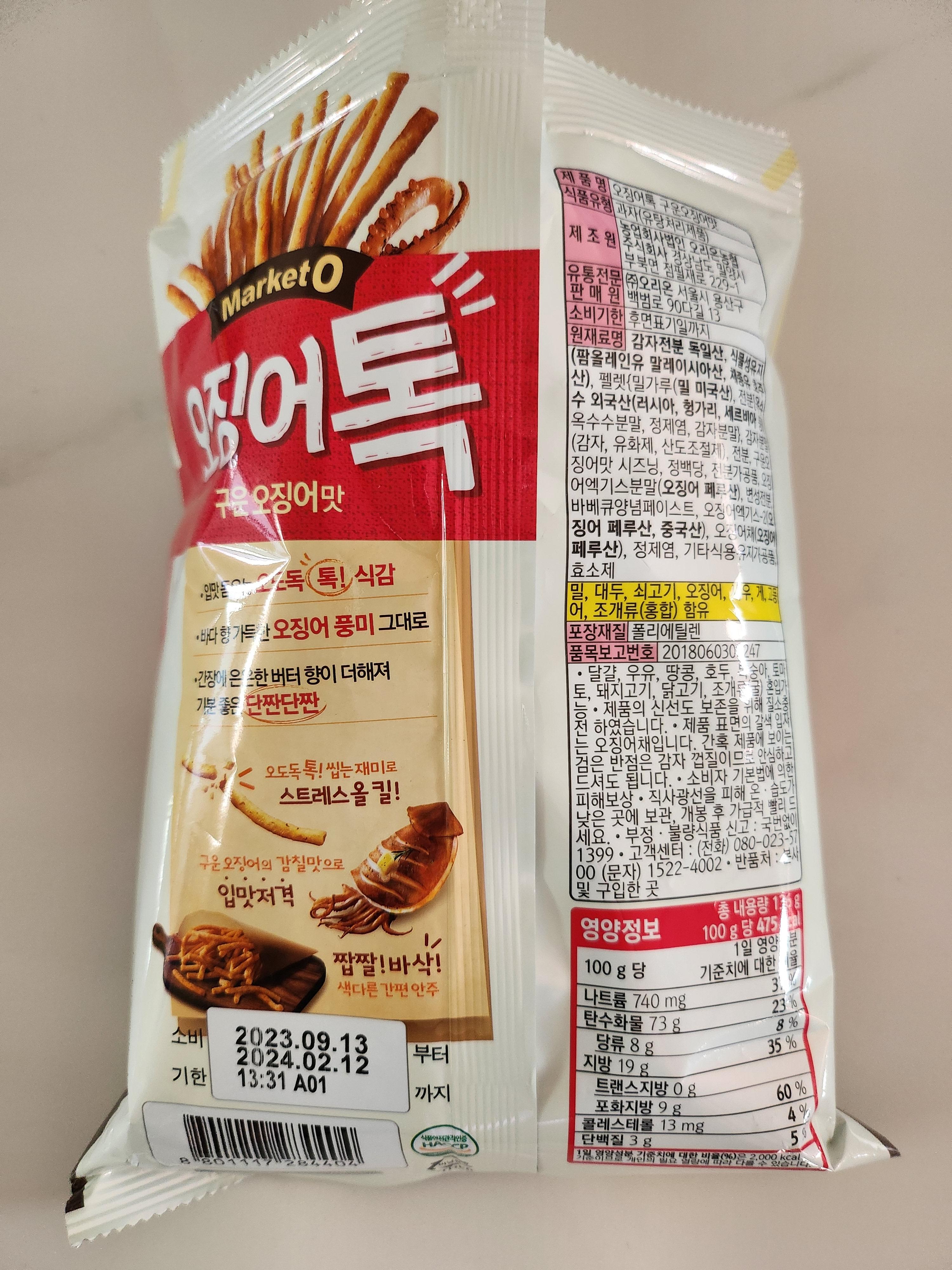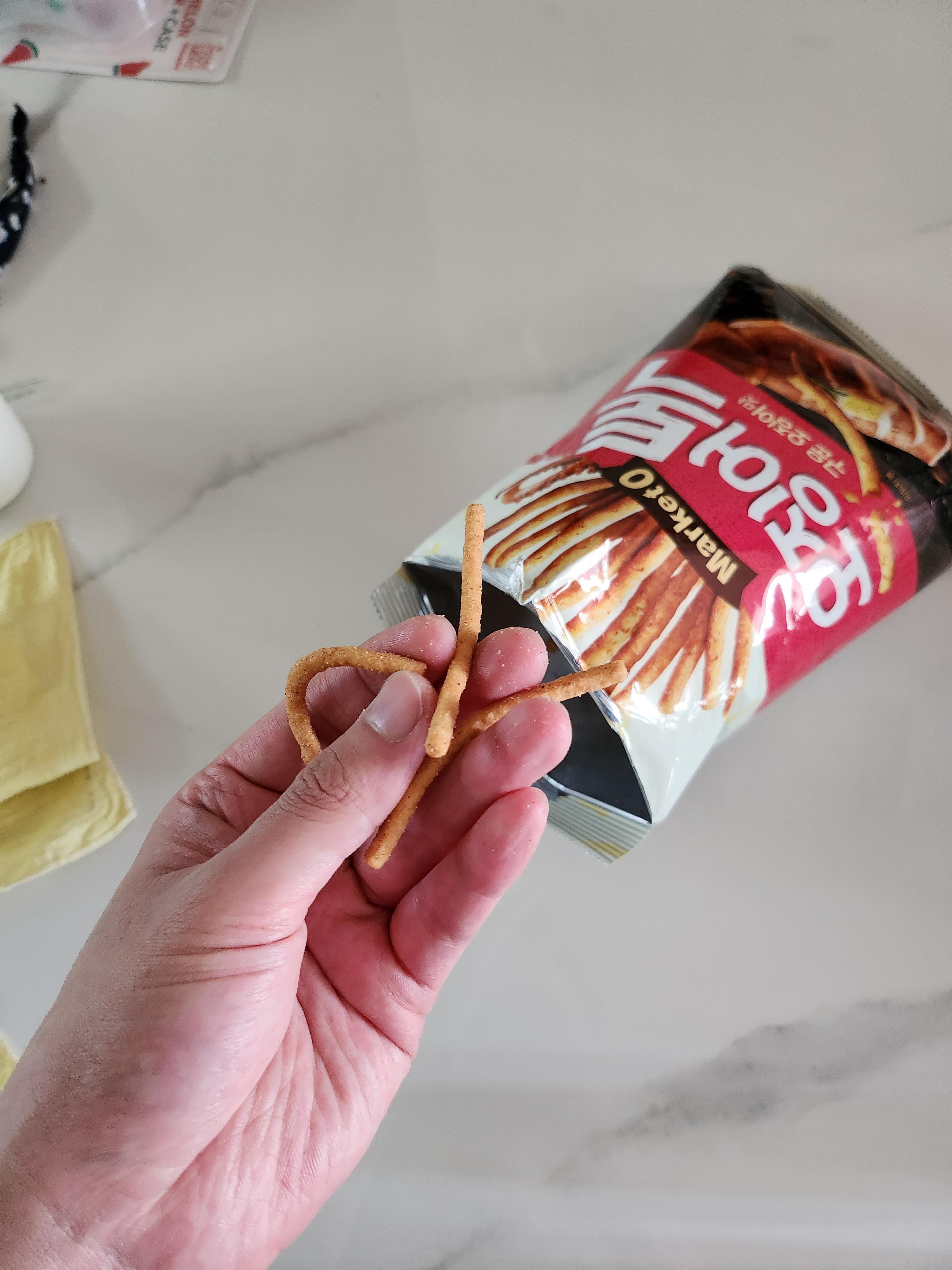 오리온 마켓오 오징어톡 과자를 먹어보았습니다.