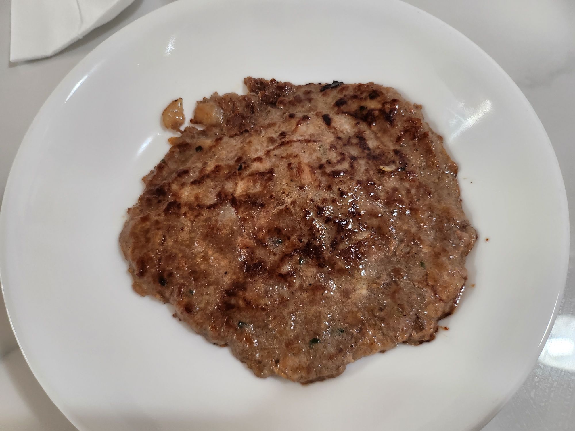 후라이펜을 달구고 기름 없이 바로 구웠습니다.