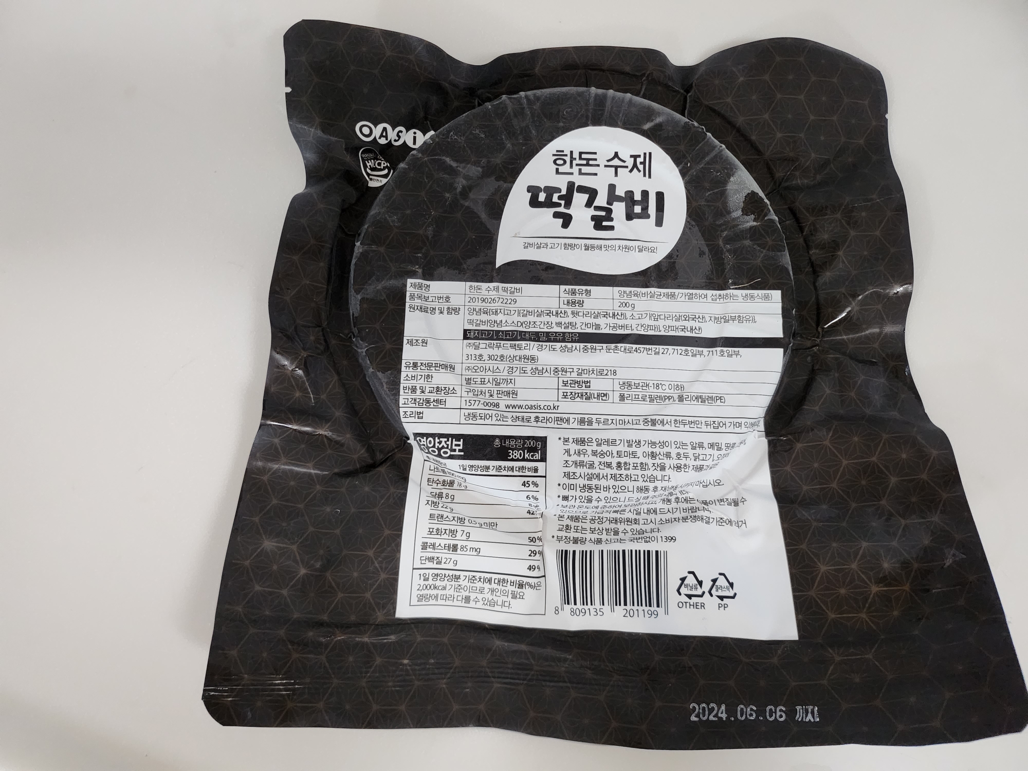 오아시스 마켓에서 한돈 수제 떡갈비를 구매했습니다.