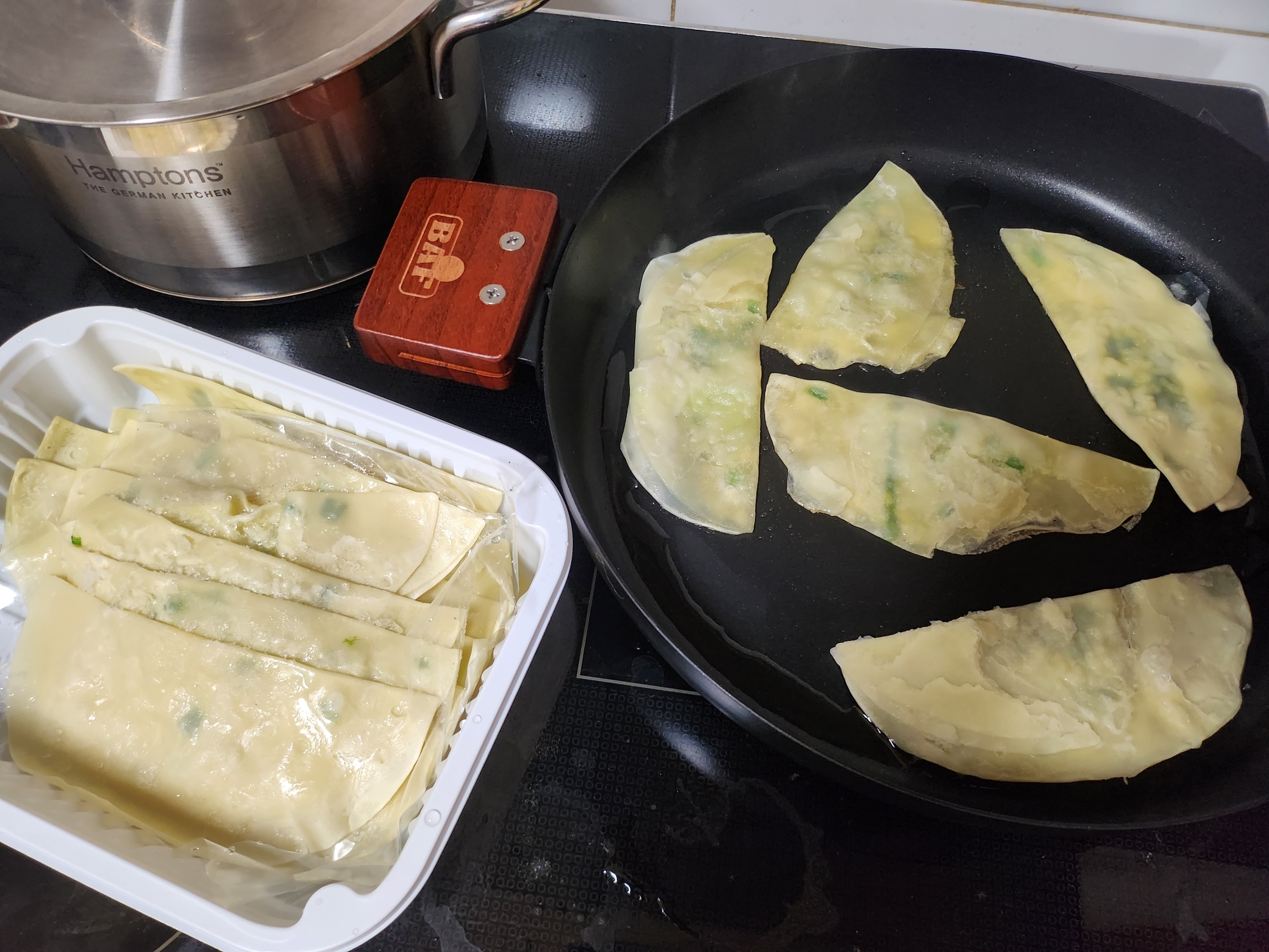 납작만두는 팬에 기름을 두르고 중불에 노릇하게 구워줍니다.