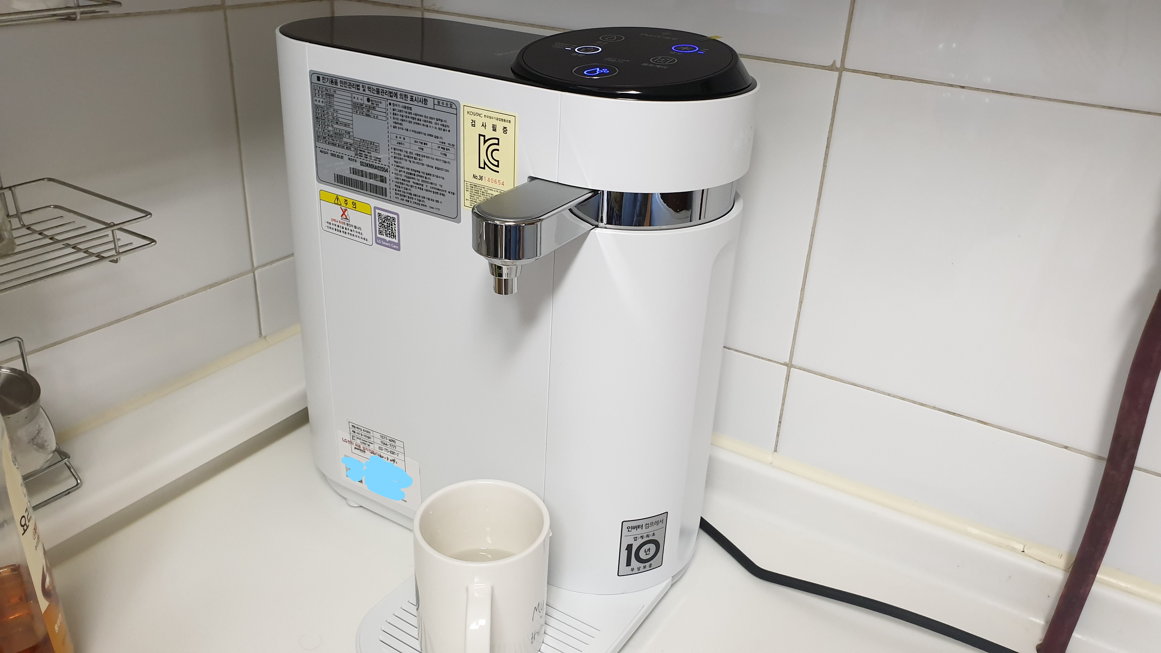 렌탈가격은 매달 2만원대이고 3개월에 한 번씩 방문 점검이 있다. (옆에 검은 전선은 인덕션)
